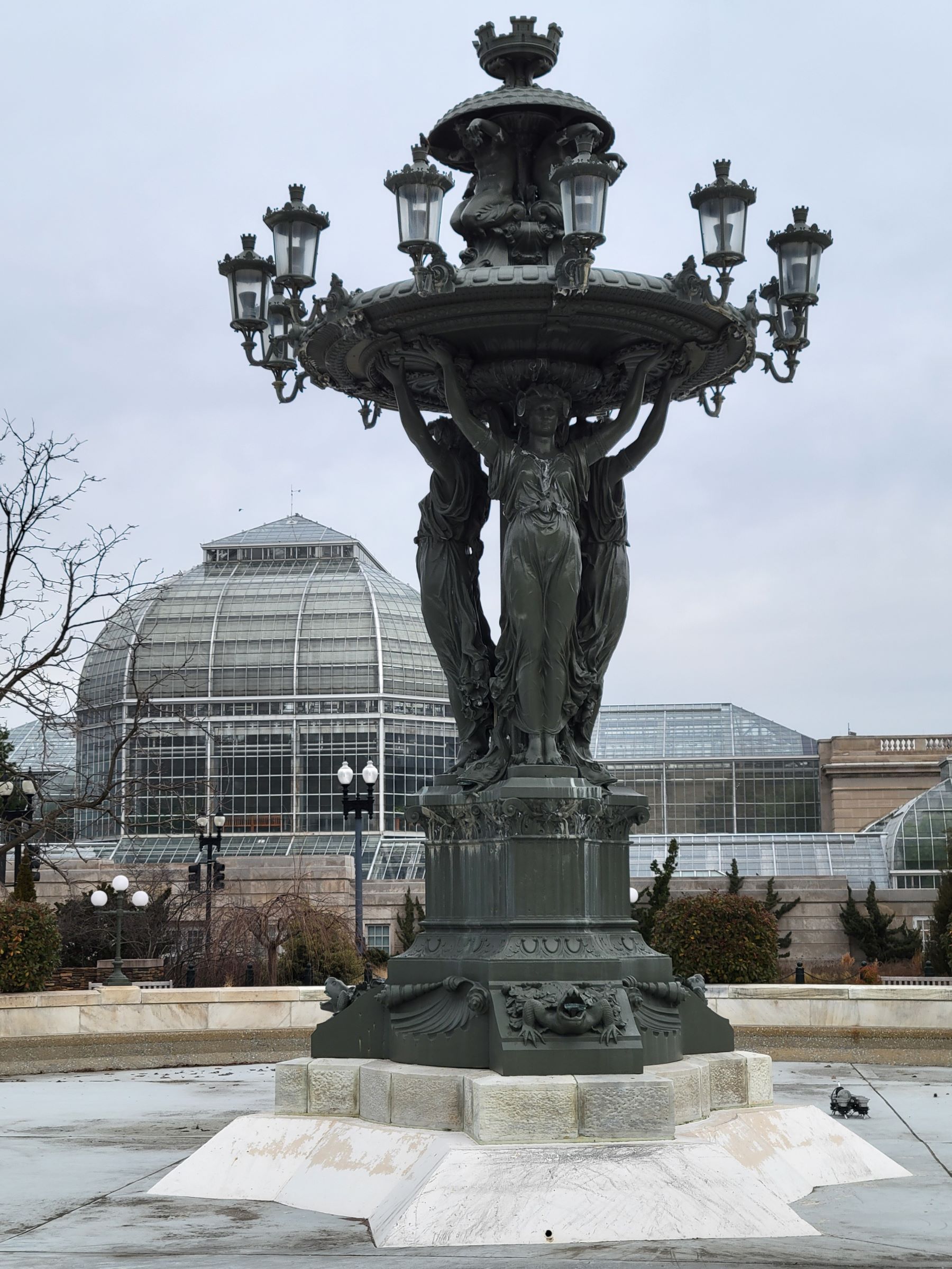 그가 1876년에 조각한 램프타워가 동그란 분수의 중앙에 있어서 그렇게 부르지만, 역시 분수의 물도 램프의 불빛도 없었다... "올가을에 지하철 하이킹 한 번 더 와야되나? 흑흑" 자동차 도로 너머에 있는 거대한 유리온실의 내부 전시와 다른 정원들의 모습은 여기를 클릭해서 작년의 방문기를 보시면 되고, 이 날은 식물원 구경은 생략하고 바로 남북 방향의 First St를 따라 의사당 서쪽의 다른 기념물로 향했다.