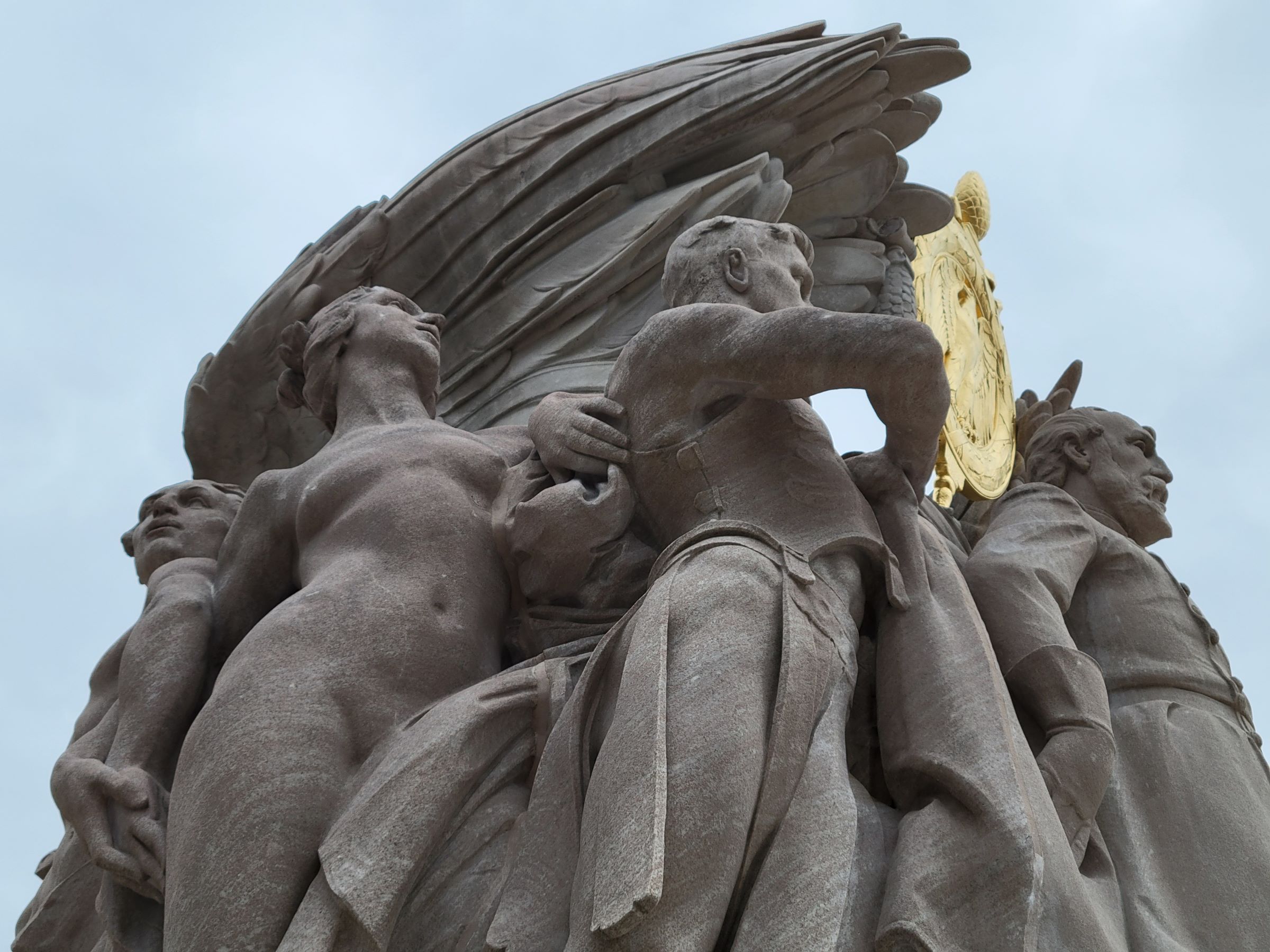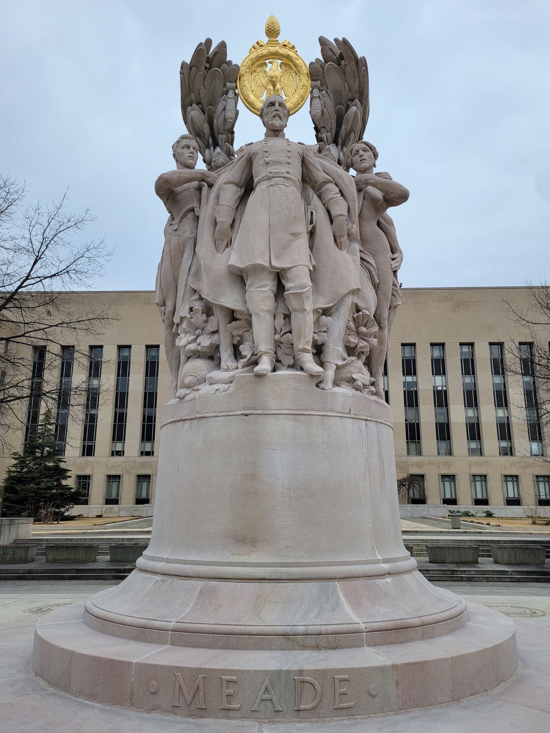 (이 날 하늘이 파랬으면 참 좋았을 텐데...) 나체의 여성은 '명성(Fame)'을, 그녀와 팔을 끼고 얼굴만 살짝 보이는 남성은 '열정(Energy)'을 나타내는데, 미드 장군이 이러한 덕목들은 모두 갖춘 명장임을 의미한단다.