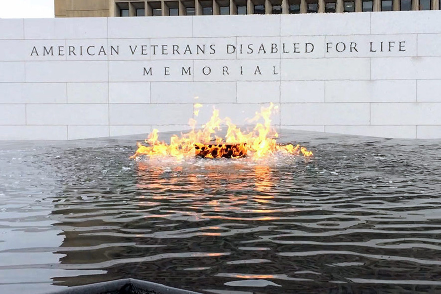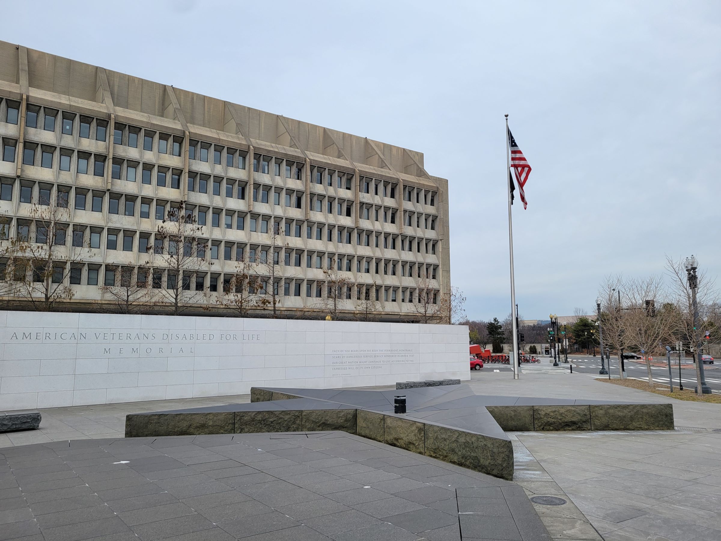 역이름 그대로 연방정부 건물만 가득한 거리를 한 블럭 지나니까, 미의사당(United States Capitol)을 배경으로 성조기가 펄럭이고 하얀 대리석 벽으로 둘러싸인 공간이 나오는데, 2014년에 개관을 한 미국 상이군인 기념물(American Veterans Disabled for Life Memorial)이다.