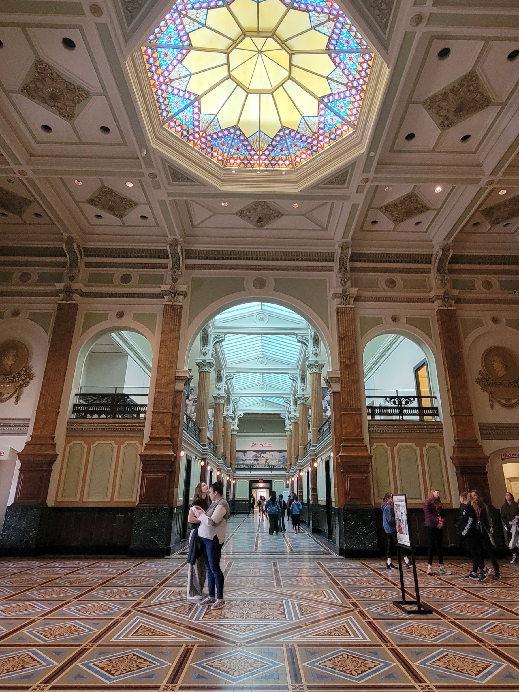 옛날 미국인이라고 해서 서양인만 있는건 아니고 원주민의 초상화도 있는데, 둥근 계단 벽에 여러 추장의 그림들이 모여있고, 그 아래의 조각은 부족들을 연합해 백인과 싸우다가 전사한 테쿰세(Tecumseh)로 이마에 총알구멍이 나있었다. 그는 미국 대통령들을 재직중 사망하게 만드는 '테쿰세의 저주'로도 유명한데, 아이러니 한 것은 앞서 소개한 인디언 토벌에도 나섰던 셔먼 장군의 미들네임이 'Tecumseh'일 정도로, 그의 사후에 미국과 캐나다에서 모두 칭송을 받는 훌륭한 인물로 여겨진다는 것이다.