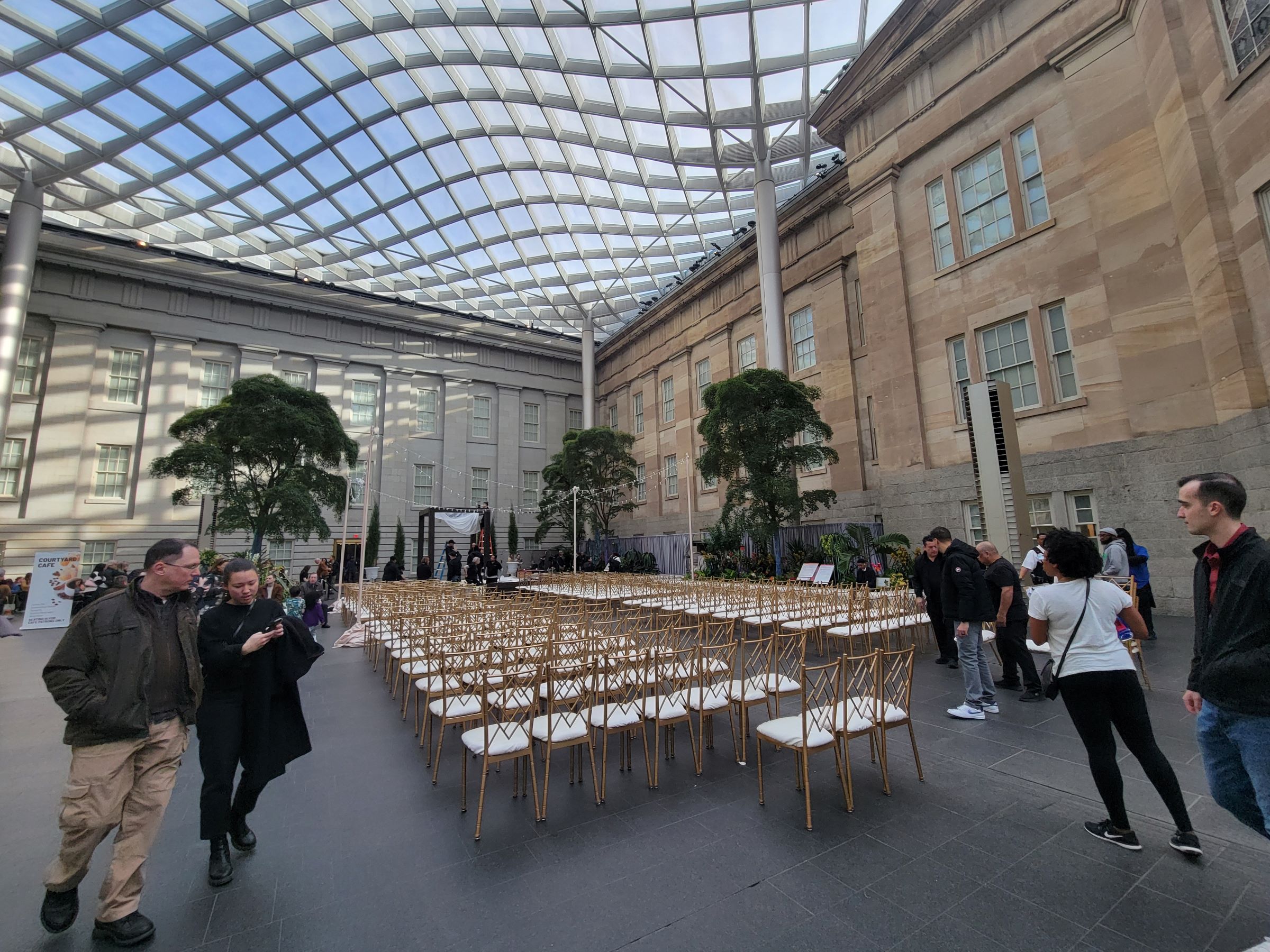 중앙정원 바닥에는 원래 얇게 물결이 이는 분수(?)가 있고, 많은 쉴 수 있는 의자와 테이블이 있었지만, 이 날은 저녁에 여기서 결혼식이 있어서 물도 잠그고 모두 치웠던 것이었다. 딸이 시집가려면 아직 한참 남았는데, 갑자기 여기 행사 대여료가 또 궁금...ㅎㅎ
