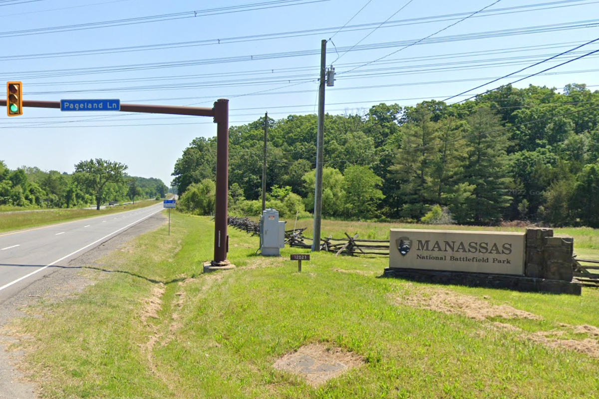 공원을 관통하는 리 하이웨이 옆으로 동서 입구에 이런 표시가 잘 만들어져 있는데... 마나사스, 마나새스, 마너새스, 매나사스, 매나서스, 매내새스, 매너사스 등등 한글로는 정말 다양하게 써지는 지명이다.^^ 여하튼 이건 구글 스트리트뷰에서 가져온 사진이고, 위기주부는 여기 서쪽 입구에서 페이지랜드 레인(Pageland Lane)으로 좌회전을 했다.
