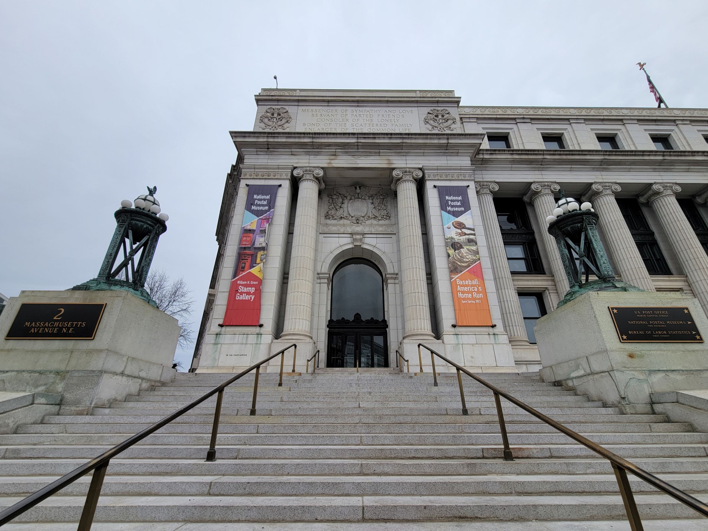 출입문으로 사용되는 동쪽 입구까지 걸어왔는데, 오랫동안 우편집중국으로 사용되며 개조되었던 건물을 1990년부터 본래 모습으로 복원한 후에, 체신청과 스미소니언 재단의 협력으로 1993년에 내셔널 포스탈 뮤지엄(National Postal Museum)으로 개관을 한 것이란다.