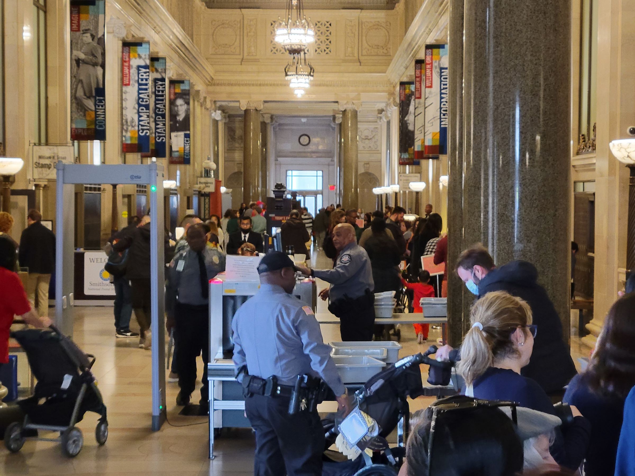 스미소니언 박물관이지만 내셔널몰에서 제법 떨어져 있어서 썰렁할 줄 알았는데, 입장을 기다리는 줄이 제법 길었다. (구글맵으로 위치를 보시려면 클릭) 특히, DC의 박물관 입장시에 소지품을 따로 엑스레이 검색대로 모두 통과시키는 것은 매우 드문 경우이다.