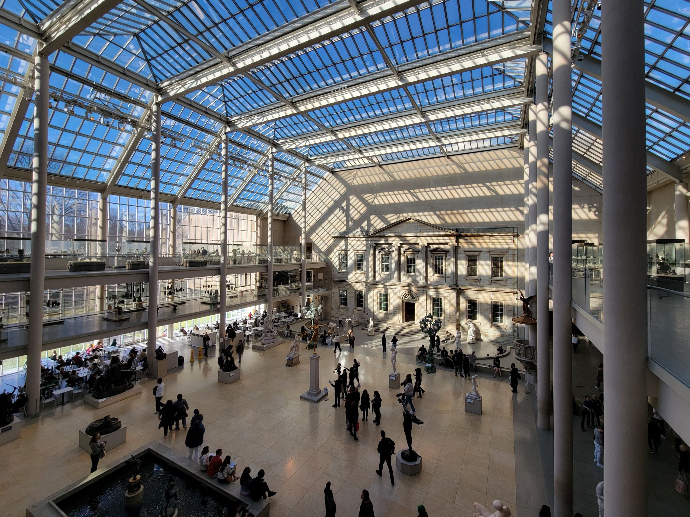 중앙의 The Great Hall 왼편에 입장권을 구매하기 위한 긴 줄이 보인다. 1880년부터 여기에 건물이 지어지기 시작해서 현재 약 20개의 건물이 남북과 서쪽으로 확장 연결이 되었는데, 방금 들어온 정문이 있는 5번가(5th Ave)에 면한 건물의 전체 길이가 약 400 m에 이르며, 전시면적은 무려 19만 제곱미터로 축구장 약 26개를 합친 것과 맞먹는다!
