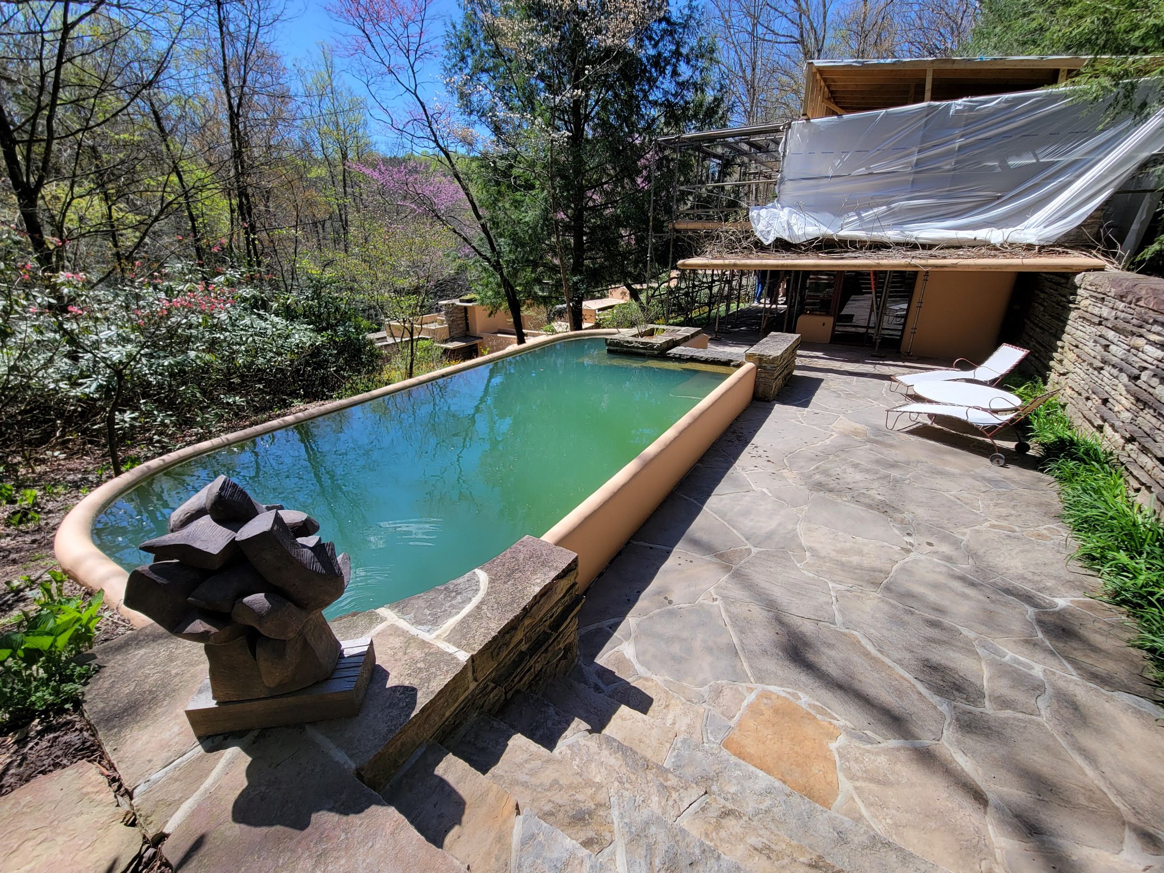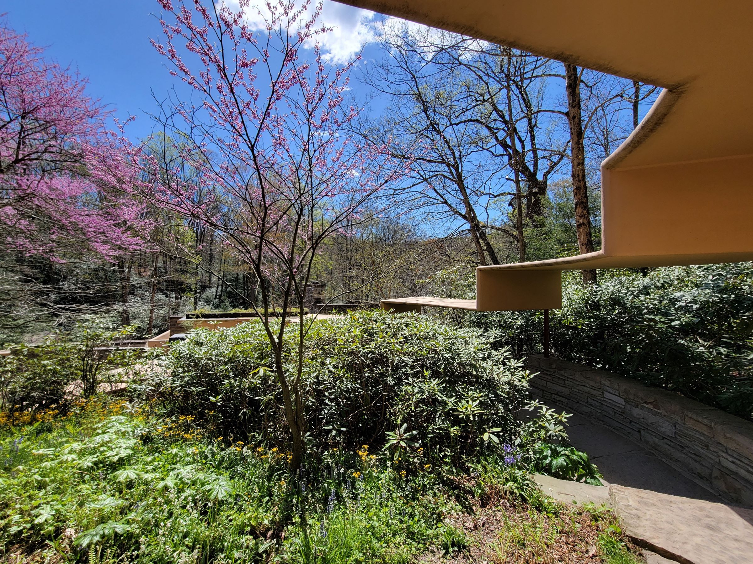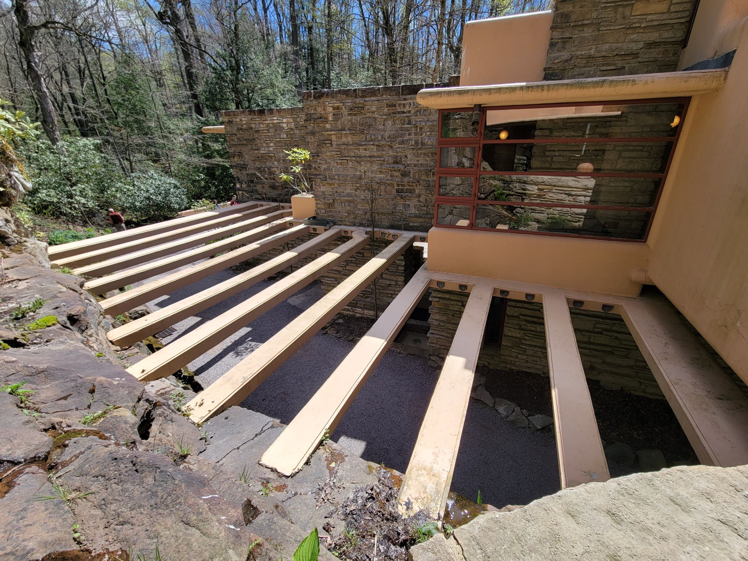 방문하기 전까지는 건물을 그냥 폭포 바로 위에 걸쳐서, 즉 물줄기가 집의 바닥을 관통하도록 만들었을거라고 막연히 상상을 했었지만, 이제 가까이 다가가서 확인을 해보니 그게 아니었다는 사실이 밝혀진다.