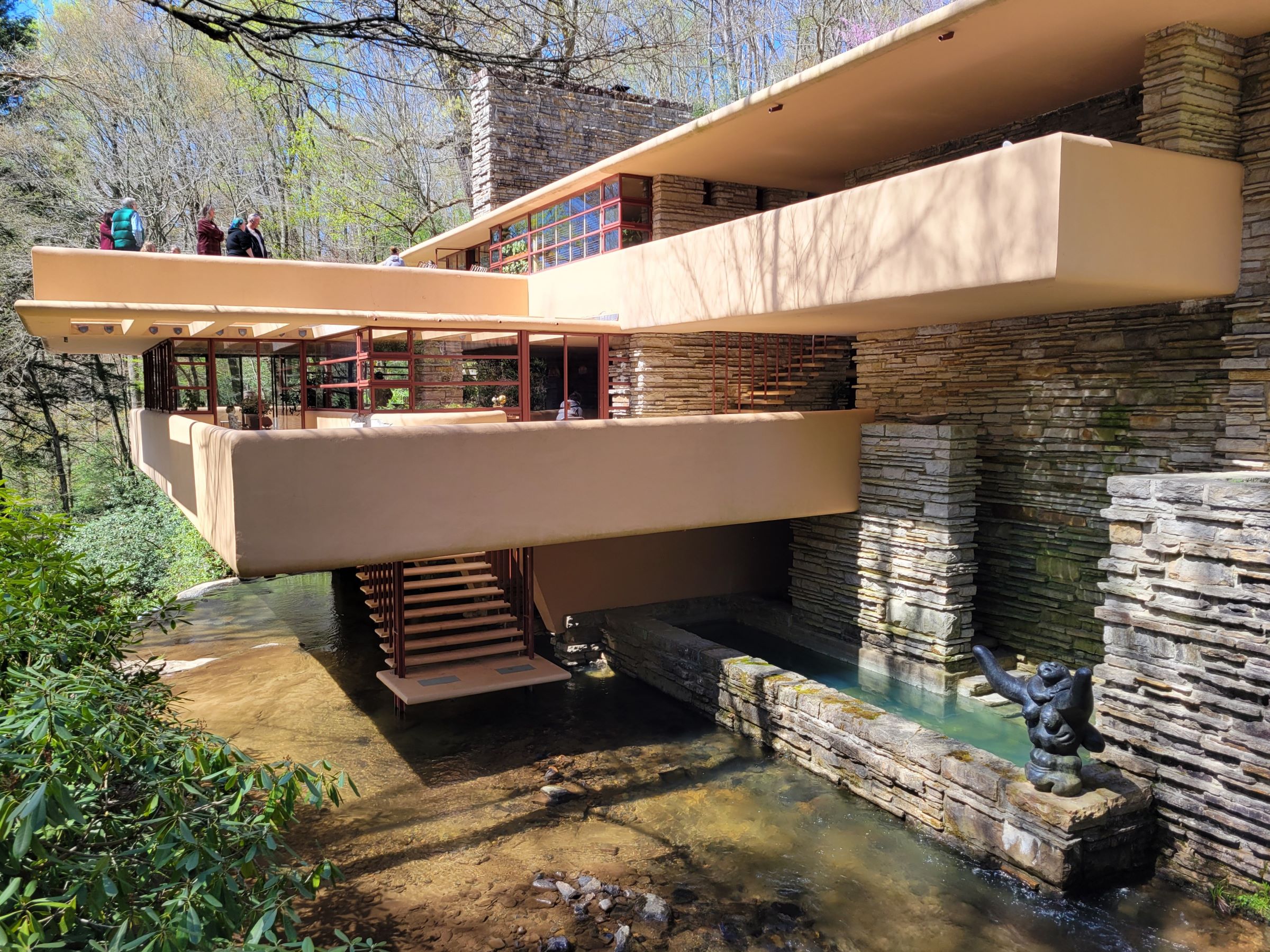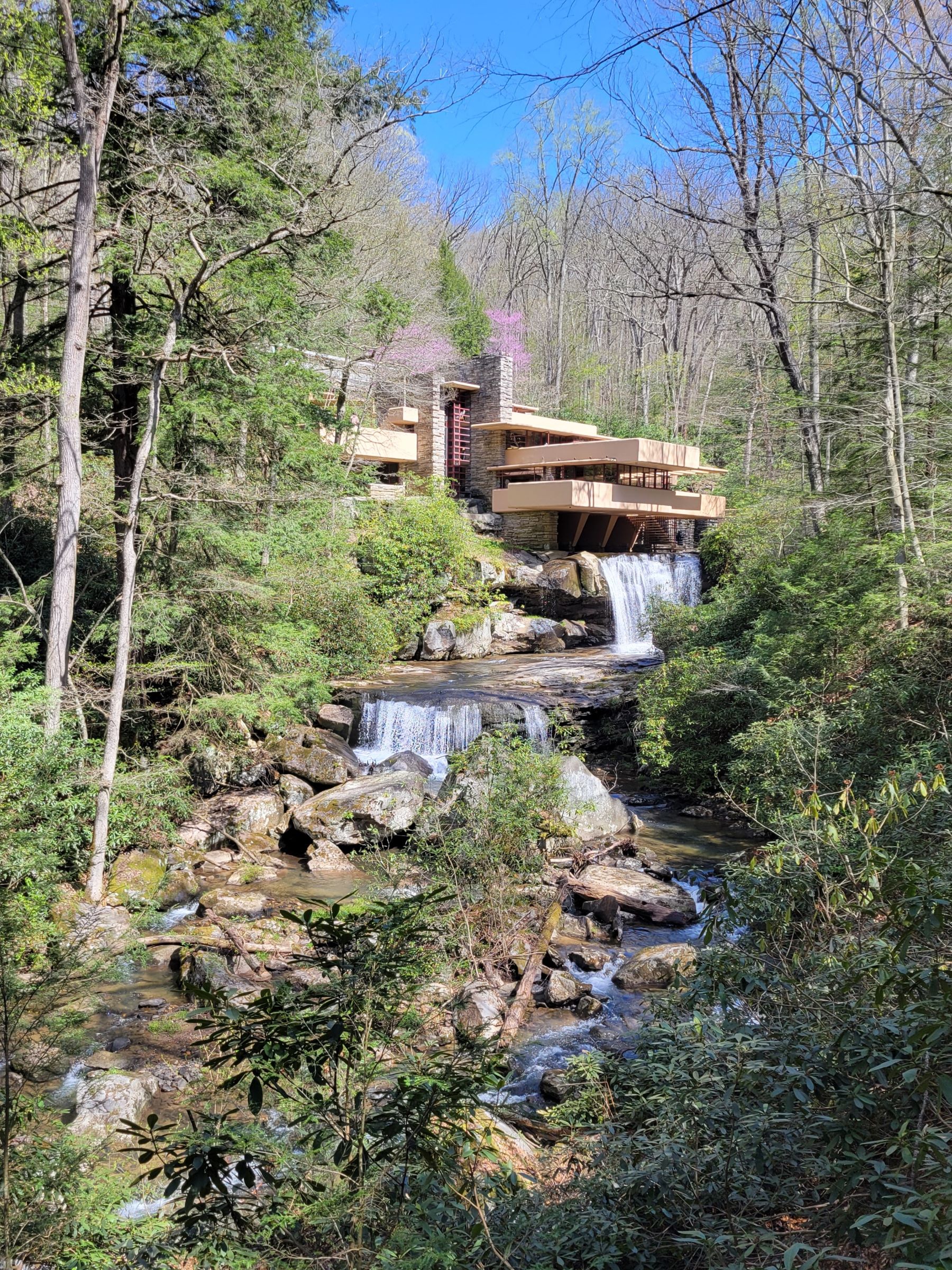 건축이나 여행에 전혀 무관심한 분이라도, 이 하우스의 사진을 적어도 한 번은 분명히 보신 적이 있으실거다! (건물을 그냥 '집'으로 부르는 것과는 느낌이 좀 다른 것 같아서 House로 씀) 20세기의 가장 유명한 미국 건축가인 프랭크 로이드 라이트(Frank Lloyd Wright)의 수 많은 작품들 중에서도 가장 유명한 건축물인 폴링워터(Fallingwater)가 펜실베이니아 숲속에 있다고 해서, 주변의 국립 공원들을 돌아보는 나들이 중간에 끼워 넣어서 방문을 했다.
