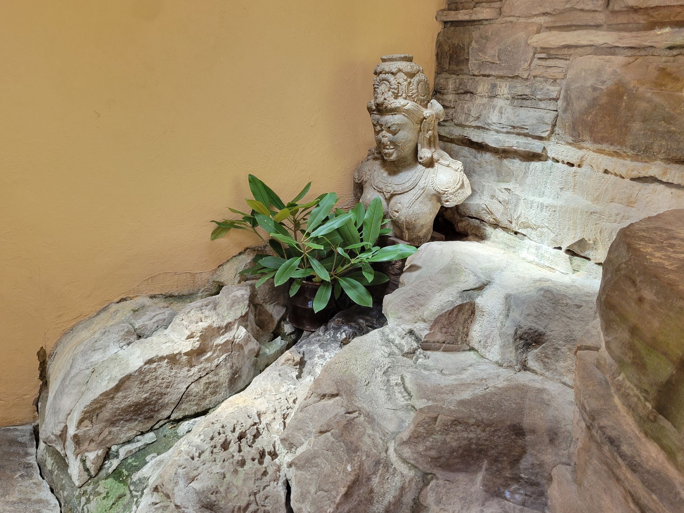 본채 윗층 출입구 안쪽, 즉 집의 실내에 있던 식물과 조각상으로, 안 들어가봐도 내부도 와부와 마찬가지로 자연과 유기적으로 연결된 철학을 바탕으로 디자인되었을 거라는 사실을 짐작할 수 있다. 배경의 고요함에 이상적으로 어울리는 우아한 단순미... 블라블라~