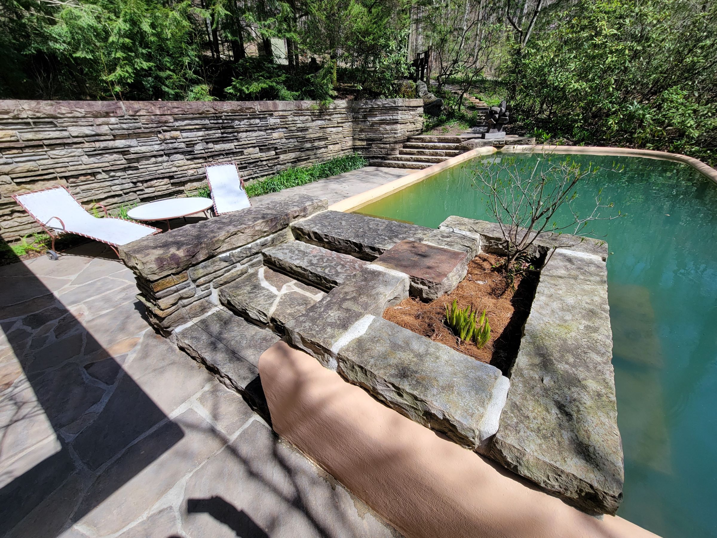 주차장이 있던 곳에 같은 양식으로 지금의 이 게스트하우스가 1939년에 추가로 건설되어 본채와 연결이 되었다고 하는데, 건물을 끼고 돌아서 뒤쪽으로 걸어가 보면 수영장이 나온다.