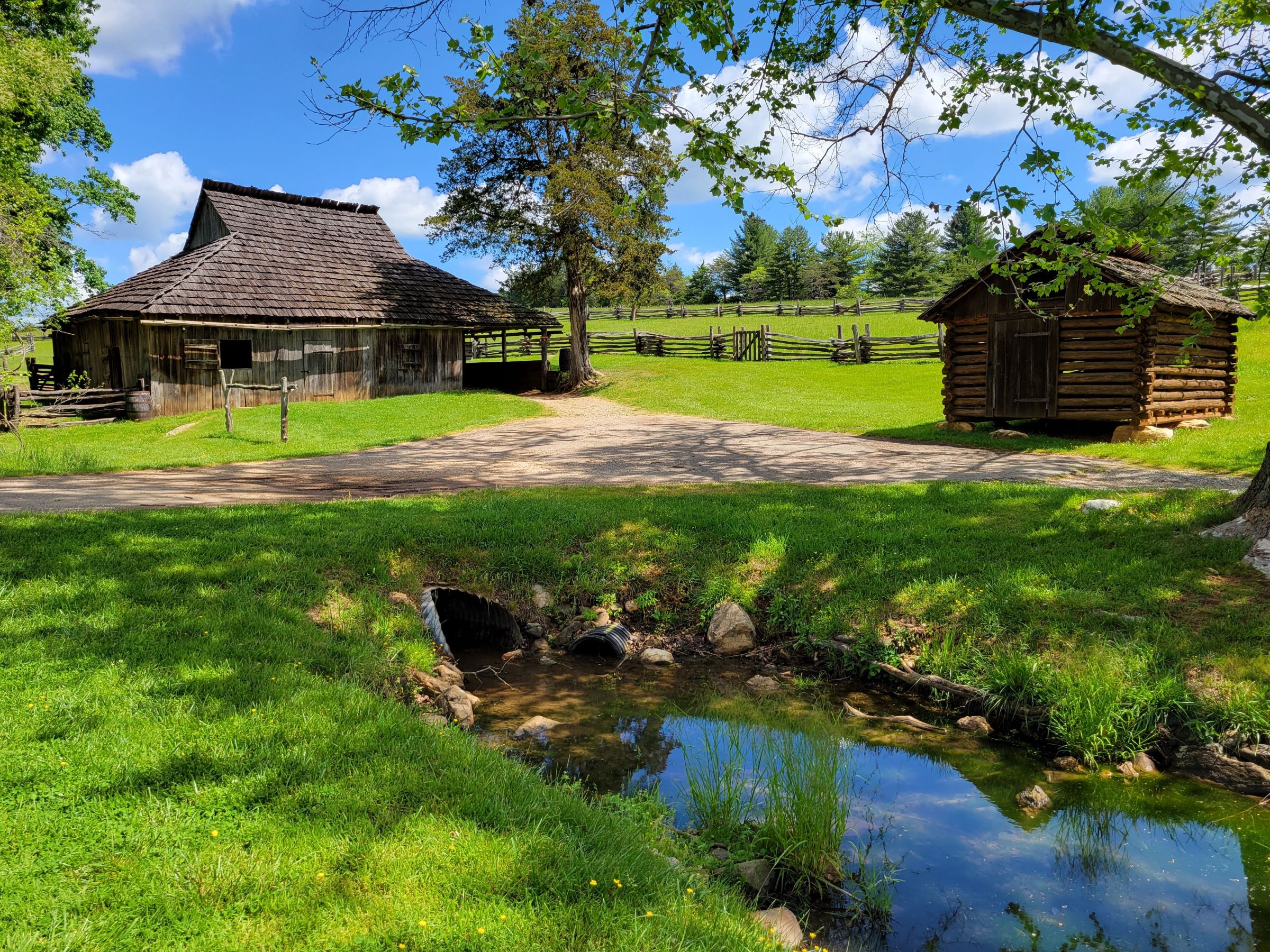 농장에서 가장 큰 왼쪽 건물은 마굿간(horse barn)이었다고 하는데, 말은 볼 수가 없었고 대신에...