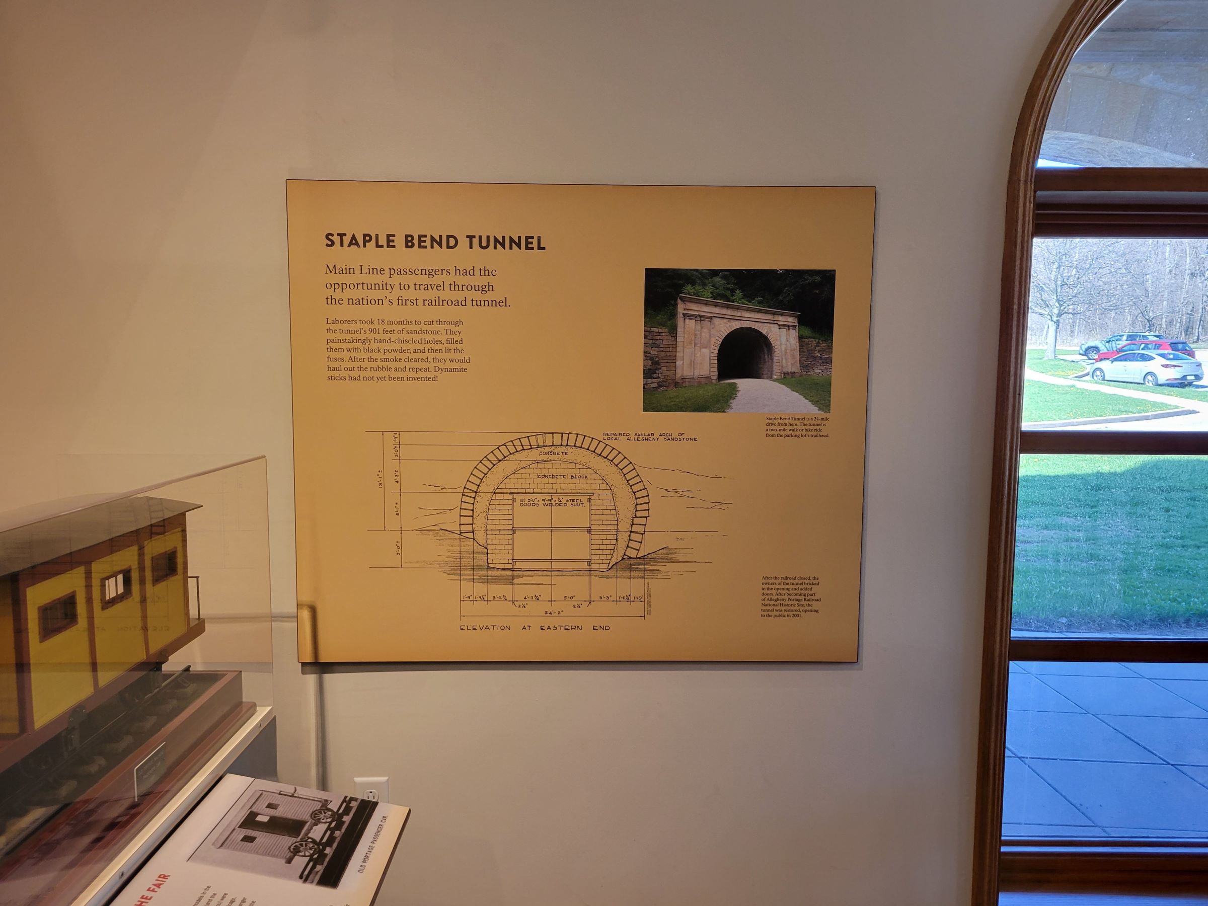 미국 최초의 기차가 지나는 동굴로 약 300미터 길이의 '스테이플 벤드 터널(Staple Bend Tunnel)'도 이 철도와 함께 만들어졌는데, 시리즈 전편에 소개했던 존스타운(Johnstown) 부근에 사진과 같은 모습으로 복원되어 있다고 한다. (창문 밖으로 이 날 위기주부와 함께 수고했던 차가 보임^^)