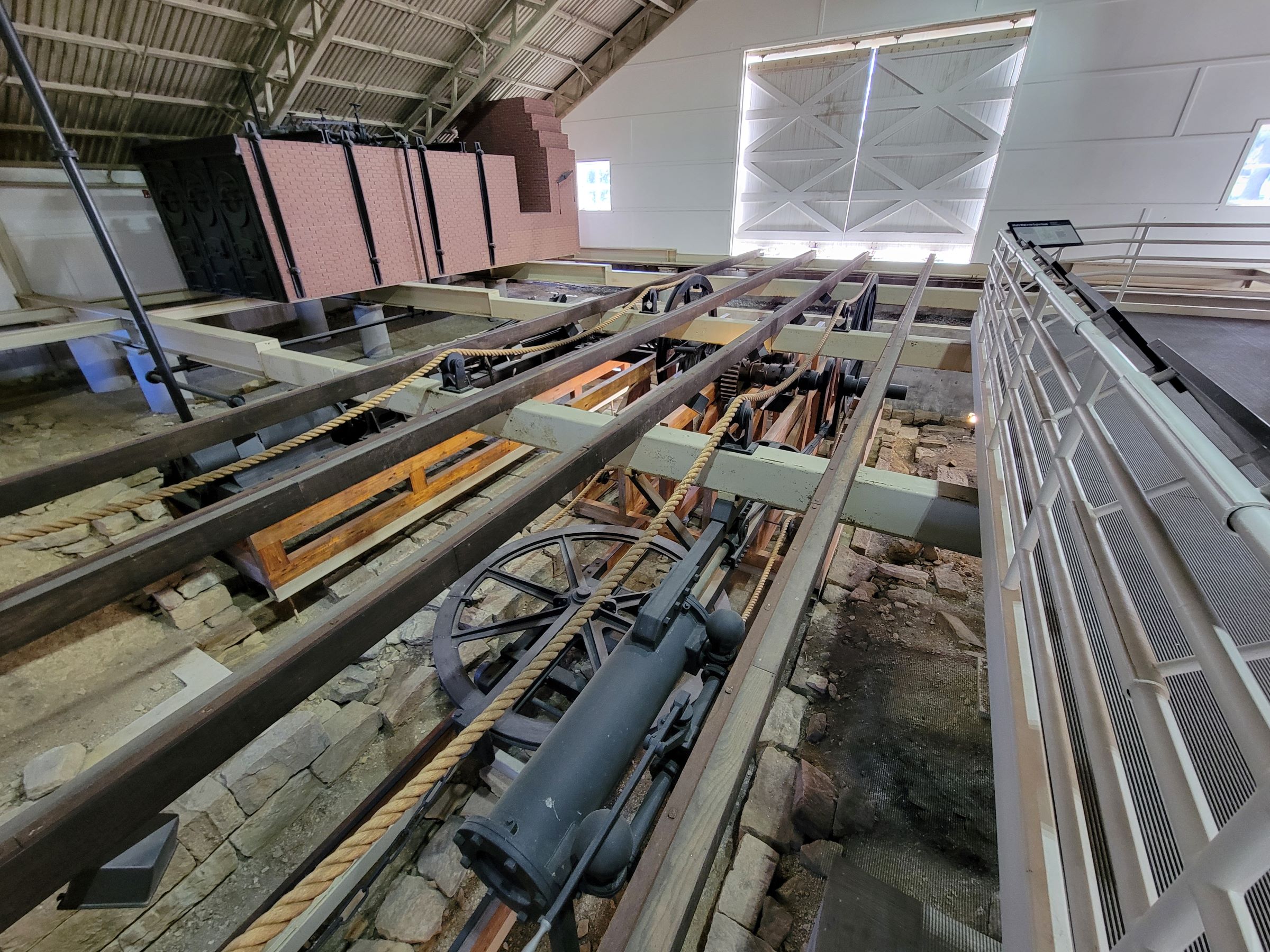 엔진하우스 내부 복선 철도의 바닥에 피스톤 엔진과 커다란 톱니바퀴가 보이는데, 그냥 줄을 감아서 끌어올릴 힘은 없었기 때문에, 하나의 밧줄로 도르래를 이용해 복선 철도의 양쪽의 기차를 연결해서, 한 대가 올라가면 다른 한 대는 내려오는 식으로 엔진은 바퀴를 돌려주는 역할만 했다고 한다. 즉, 푸니큘라 또는 인클라인이라 부르는 경사철도(incline railroad) 혹은 강삭철도(cable railway) 시스템을 10개나 만든 것이다.