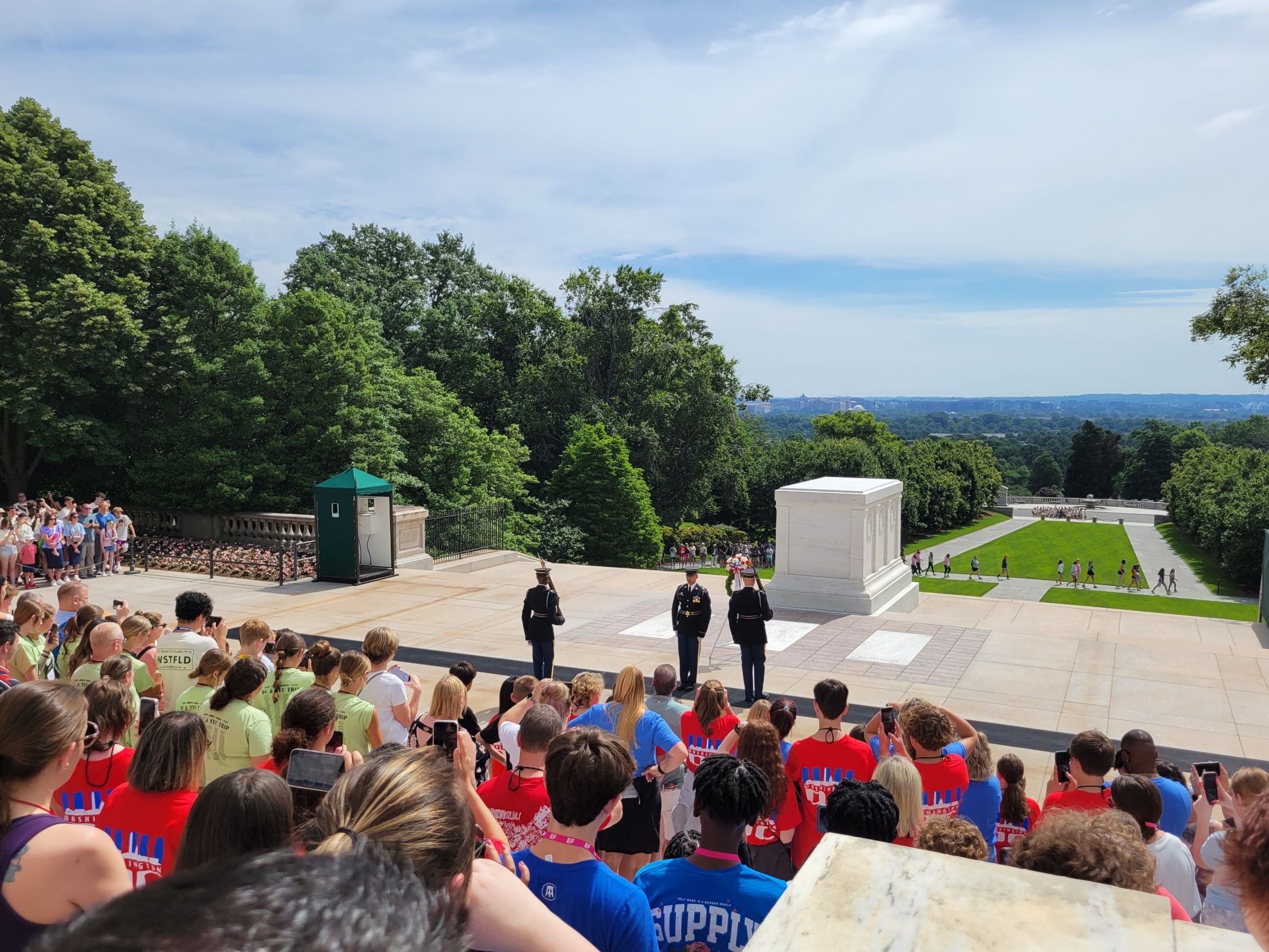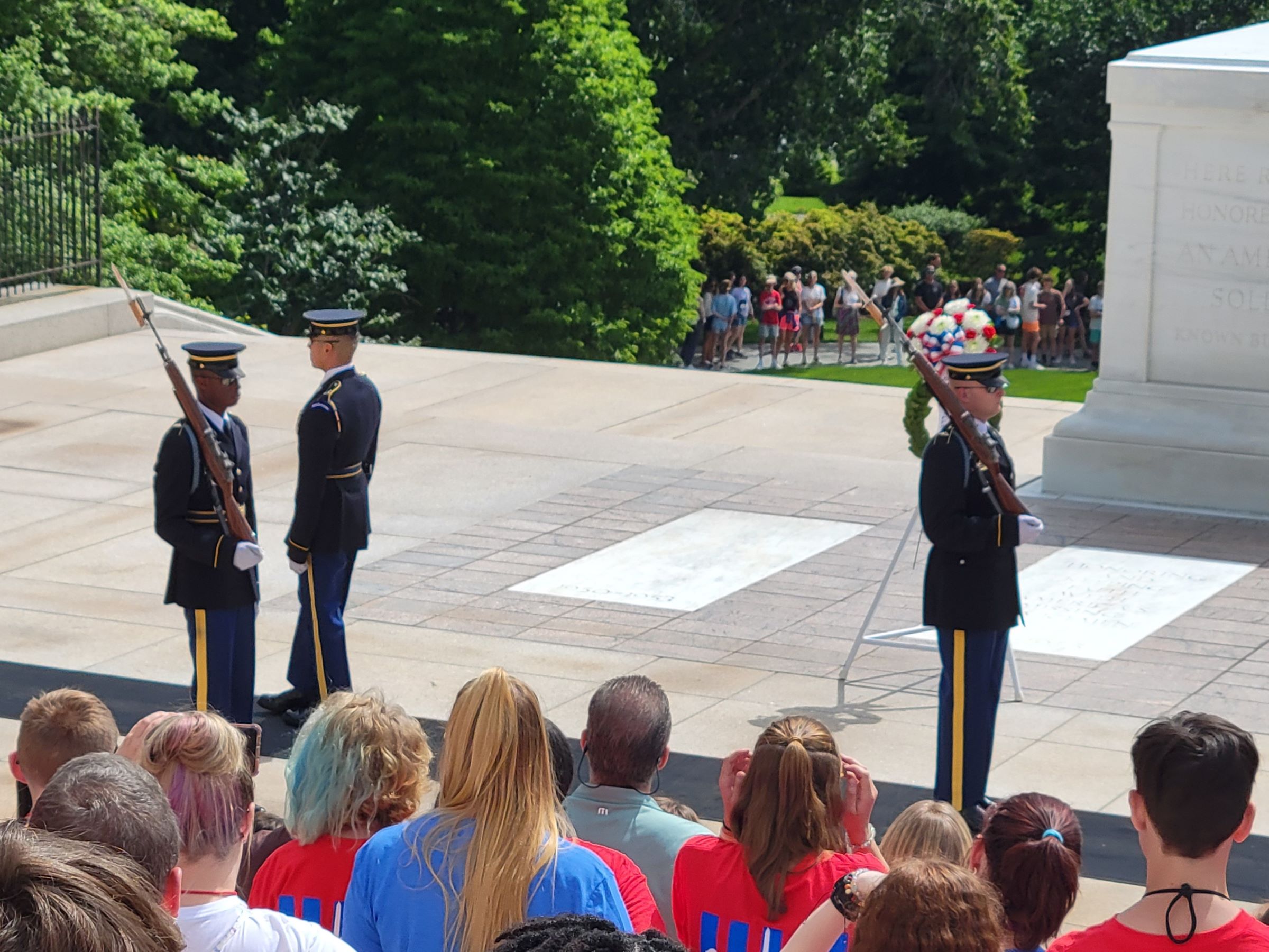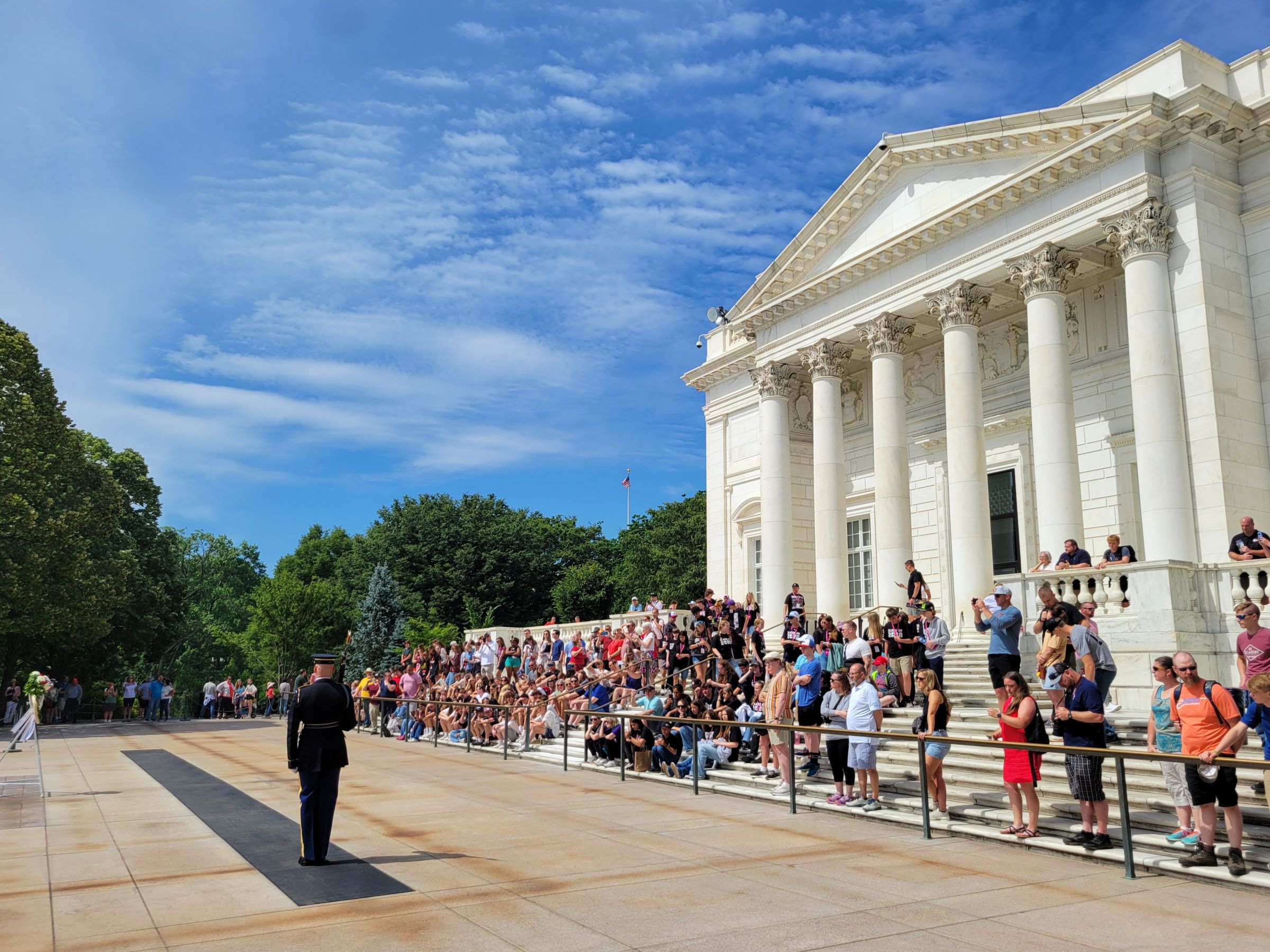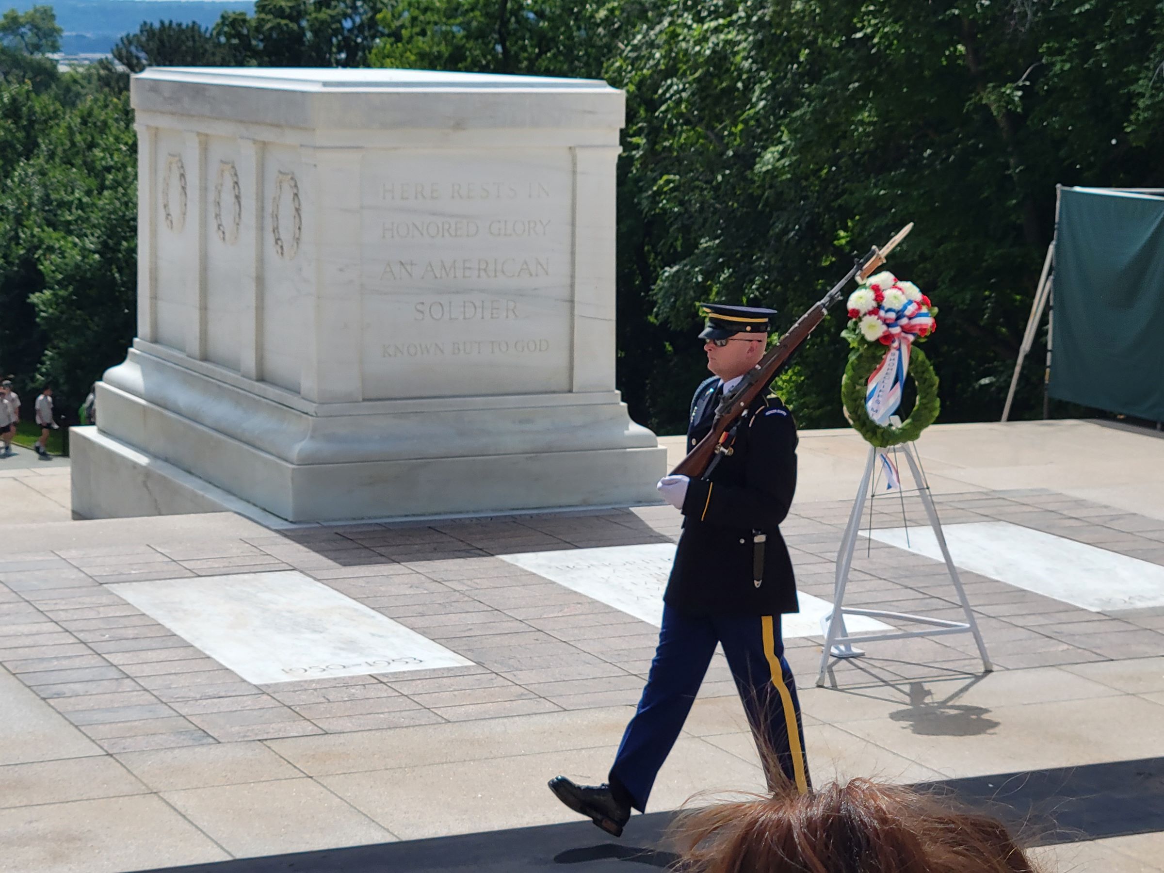유럽의 여러 왕궁 등에서 행해지는 화려한 근위병 교대식에 비해서는 아주 단촐한 볼거리였지만, 알링턴 국립묘지를 방문했다면 반드시 직접 봐야할 의미있고 엄숙한 모습이었다. 이렇게 24시간 지키는 석관 아래에는 실제로 신원이 확인되지 않은 제1차 세계대전, 제2차 세계대전, 그리고 한국전의 유해 3구가 잠들어 있단다. (1984년에 베트남전 미확인 유해도 추가했었는데, 나중에 DNA 분석으로 신원이 밝혀져서 고향의 국립묘지로 이장되었다고 함)