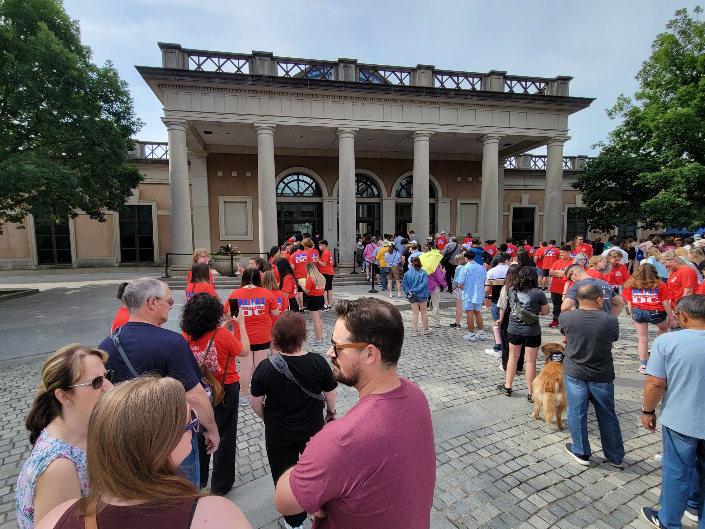 오전 일찍부터 환영소(Welcome Center)를 통해 입장하기 위해 보안검색을 기다리는 많은 방문객인데, 빨간 셔츠를 맞춰입은 사람들은 수학여행을 온 학생과 인솔자들이다. 또 유럽에서 온 단체 여행객들도 많아서 이미 버스 주차장은 만차였고, 입구 도로변까지 관광버스들이 줄지어 세워져 있었다. (구글맵으로 위치를 보시려면 클릭)