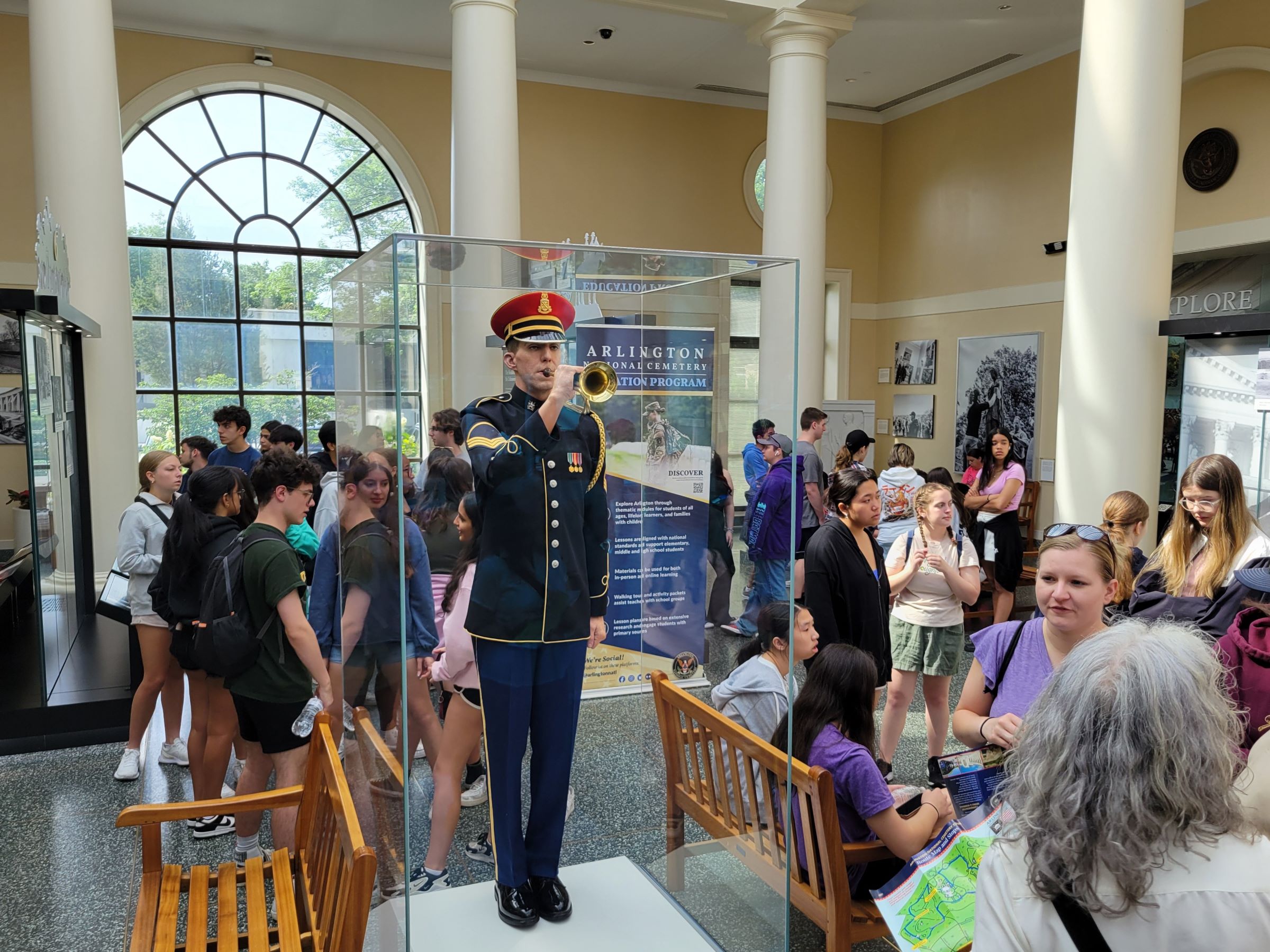 웰컴센터 내부에는 이 곳의 설립역사와 규모 등에 대한 안내판들이 있는데 차차 설명을 드릴 예정이고, 중앙에 의장대 '나팔수'가 밀랍인형으로 정교하게 만들어져 세워진 모습이 작년에 방문했던 미육군 국립박물관의 전시를 떠올리게 했다.