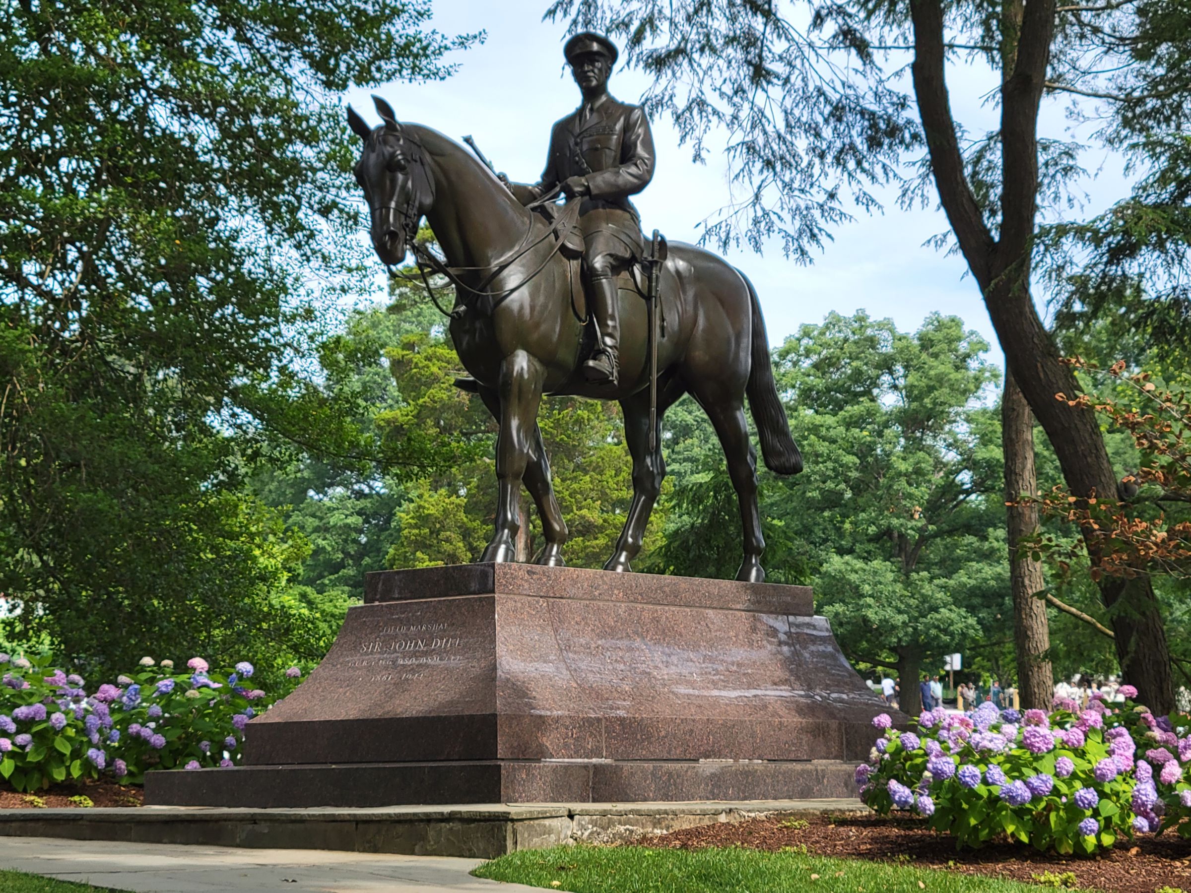 그렇게 많은 묘지가 있어도 사람의 동상은 딱 2개밖에 없다는데, 그 중의 하나인 Sir John Dill 5성 장군의 기마상이다. 그는 영국인으로 제2차 세계대전 중에 연합군 지휘를 위해 워싱턴에서 근무하다가 사망해서, 국립성당에서 성대한 장례식을 치른 후에 알링턴에 묻혔다고 한다.