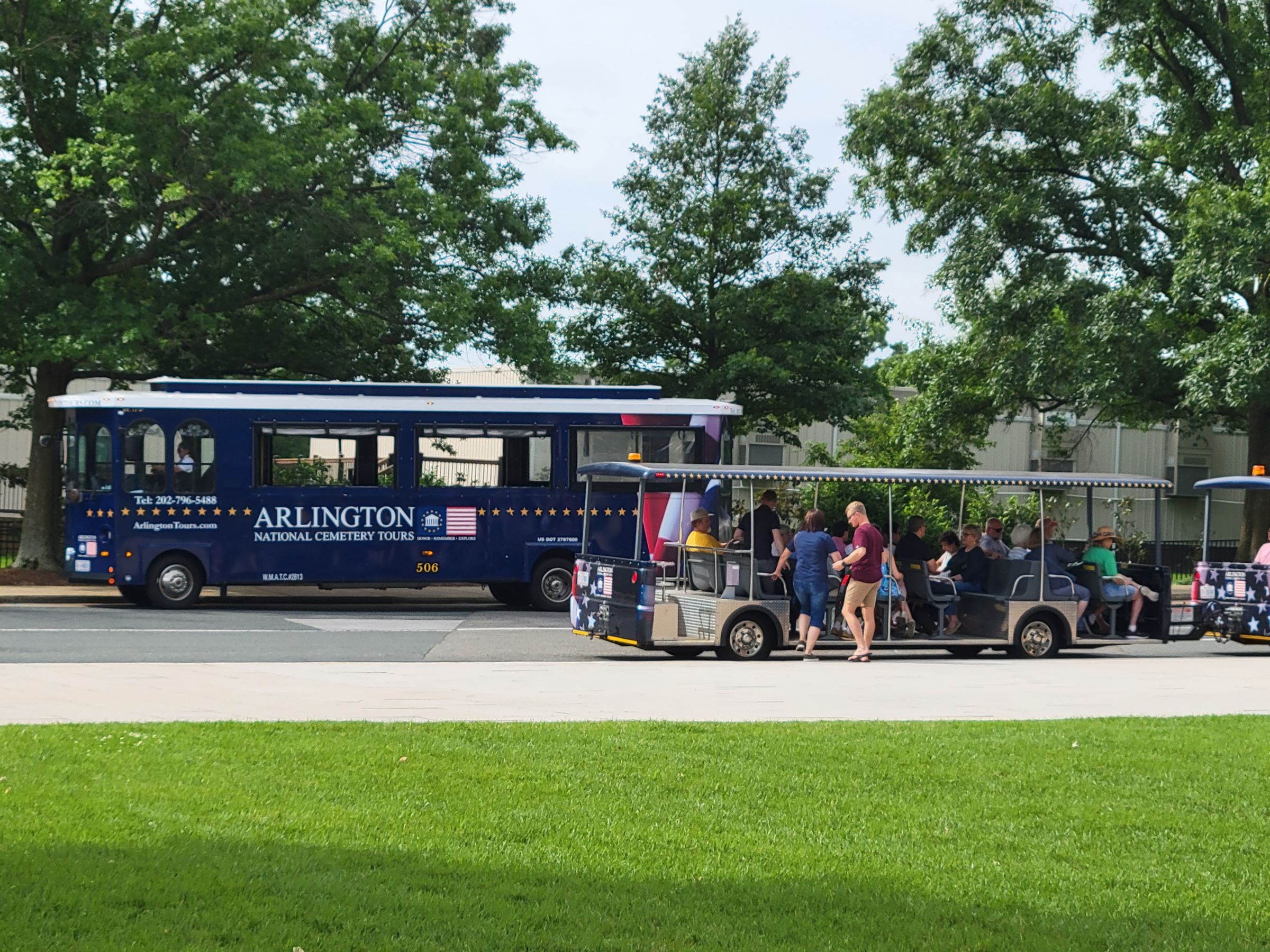 당연히 국립묘지 입장료는 없지만, 사진의 셔틀과 트램을 번갈아 타며 전체를 설명과 함께 둘러보는 투어는 유료로 운영이 되고 있는데, 일요일이라 그런지 이용객이 제법 있었다. 당연히 우리 부부는 단체 관람객들 무리에 슬쩍 휩쓸려 여기저기 설명을 주워들으며 그냥 걸었다~