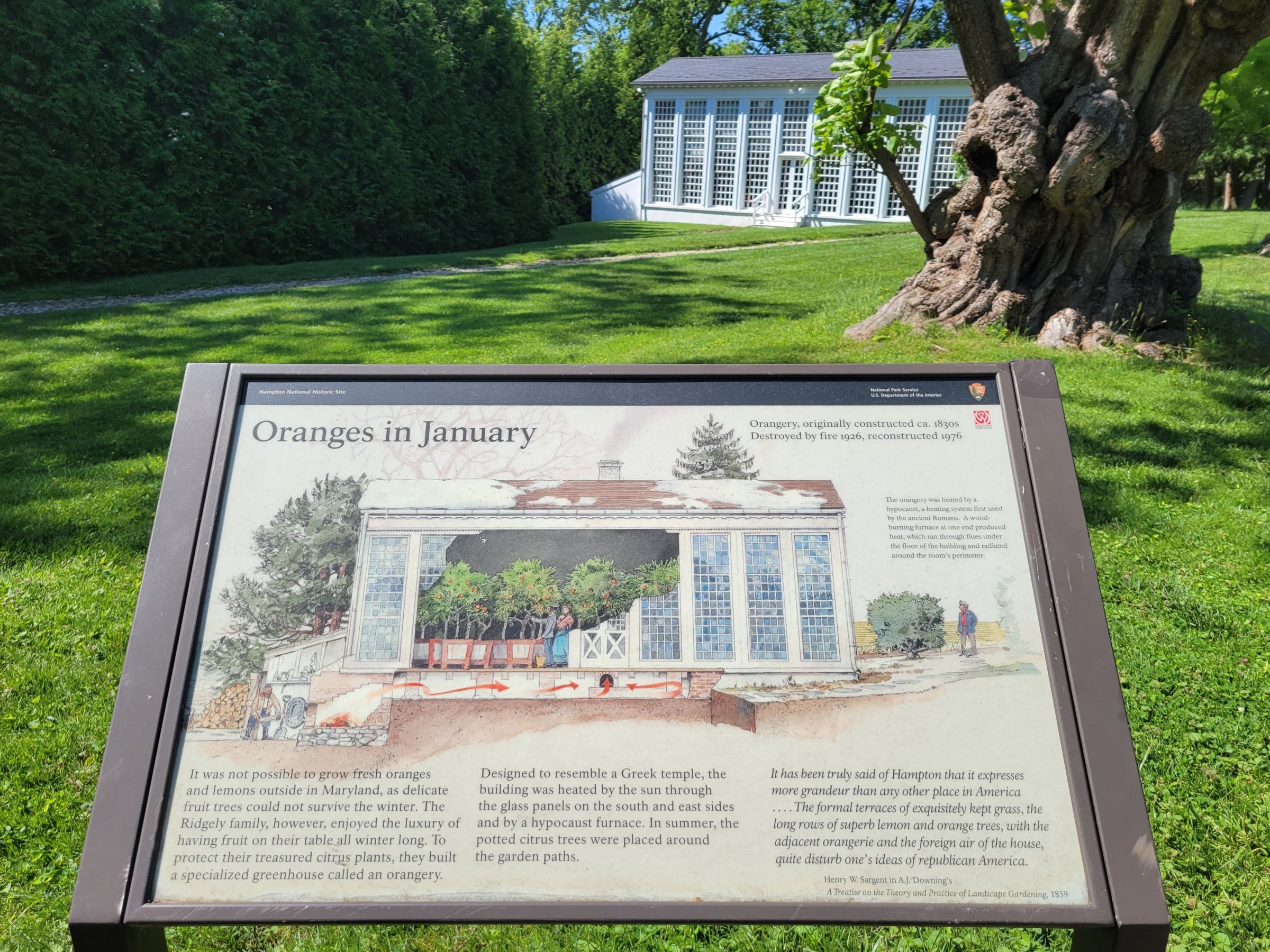 참, 롱우드가든 포스팅에서 'Orangery'라는 단어를 다음에 설명하겠다고 약속했었는데, 안내판의 그림과 같이 바닥에 온돌(hypocaust)을 설치한 유리 온실을 그렇게 부른다. (뒤로 보이는 건물은 1976년에 복원한 것으로 뒤쪽은 화장실로 사용) 한겨울에도 오렌지 나무를 키워서 따먹기 위한 당시 부의 상징과 같은 건물로, 프랑스 파리의 유명한 오랑주리 미술관(Musee de l'Orangerie)도 루브르 궁전의 이런 온실이었다.