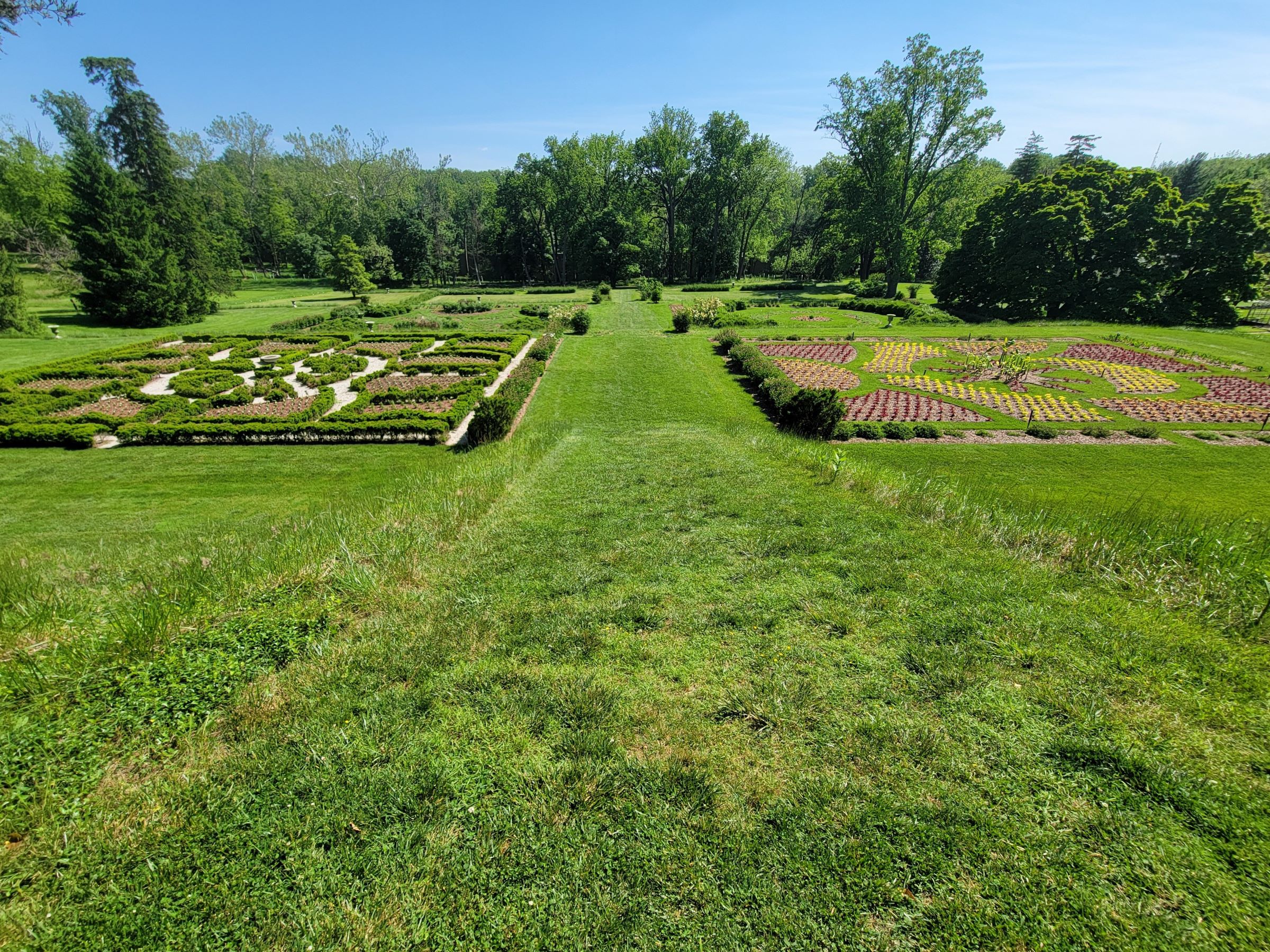 저택 남쪽으로는 정사각형의 기하학적인 정원들이 여러 개 만들어져 있는데, 앞쪽 두 개만 그 모양을 겨우 유지하고 있다.