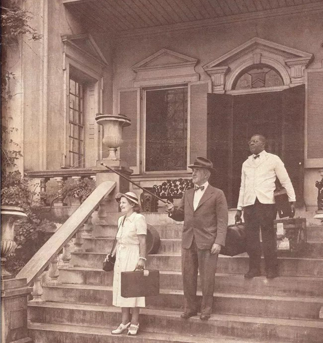 1948년에 저택과 주변 땅을 90,000달러에 팔고 마지막으로 북문을 나서는 John Ridgely, Jr. 부부의 모습으로, 사들인 재단이 정부에 바로 기증을 해서 현재의 국립사적지가 되었고, 2년의 수리를 거친 후에 일반 관람객에게 집 내부가 공개되게 된다. 무엇보다 이 곳의 가치는 200년 이상 한 집안의 소유였던 땅에, 6대에 걸쳐서 그대로 보존이 된 대저택이라는데 있단다.