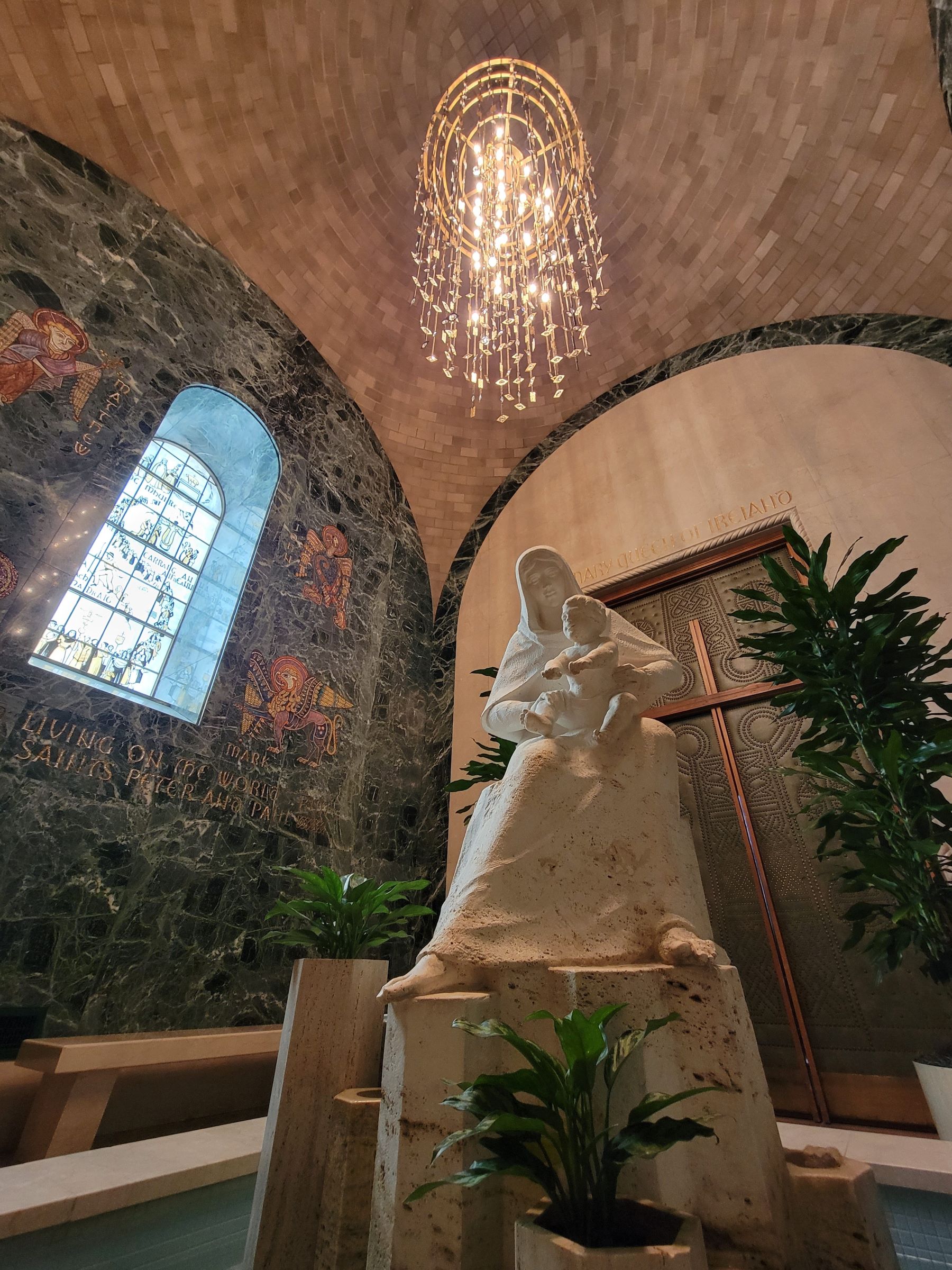 그리고 본당을 나와서 종탑의 제일 아래쪽에 놓여진 성모 조각상을 마지막으로 구경했다. 종탑 꼭대기까지 올라가는 계단은 막아 놓아서, 이걸로 미국 최대의 가톨릭 대성당의 내부 구경은 끝...^^