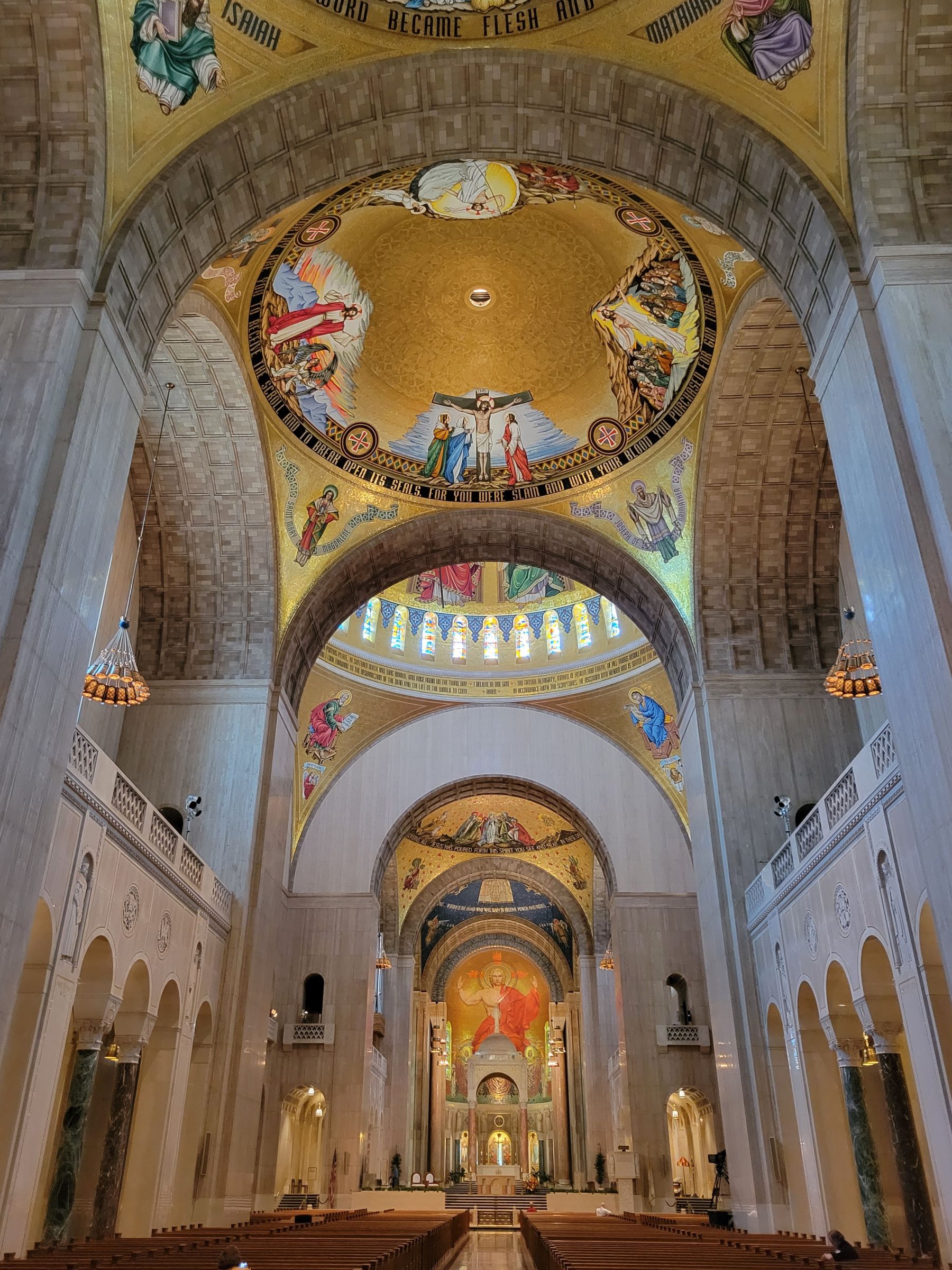 성자와 성령이 그려져 있어서 삼위일체(Trinity)를 상징하고, 테두리를 따라서는 여러 성인과 교황의 모습들이 새겨져 있다. 세계에서 가장 면적이 넓은 모자이크 중의 하나라는 이 중앙돔 안쪽의 그림은 2017년에야 최종 완성이 되었다고 한다.