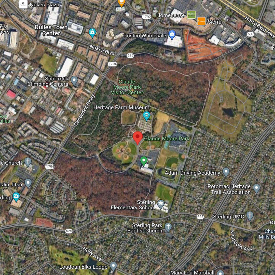 Dr. Claude Moore는 군의관으로 제1차 세계대전에 참전하고 돌아와 DC의 조지워싱턴 대학병원의 초대 방사선과장으로 일한 후에, 개인 클리닉을 열어서 번 돈으로 1931년부터 북버지니아에 많은 땅을 샀다. 그는 1975년에 여기를 National Wildlife Federation에 기증했는데, 그 단체가 1986년에 개발업자에 땅을 팔아버리자 무효 소송을 했지만 패소하고, 라우던 카운티가 다시 매입을 해서 1990년에 현재의 공원이 되었다. 그는 1956년에 은퇴한 후에 줄곧 이 공원 안의 집에서 살다가 1992년에 98세로 사망했는데, 그가 자신의 전재산으로 1987년에 설립한 자선재단은 지금도 활발히 운영되고 있으며, 지금까지 9천만불이 넘는 금액을 500개 이상의 비영리단체에 지원해왔단다.