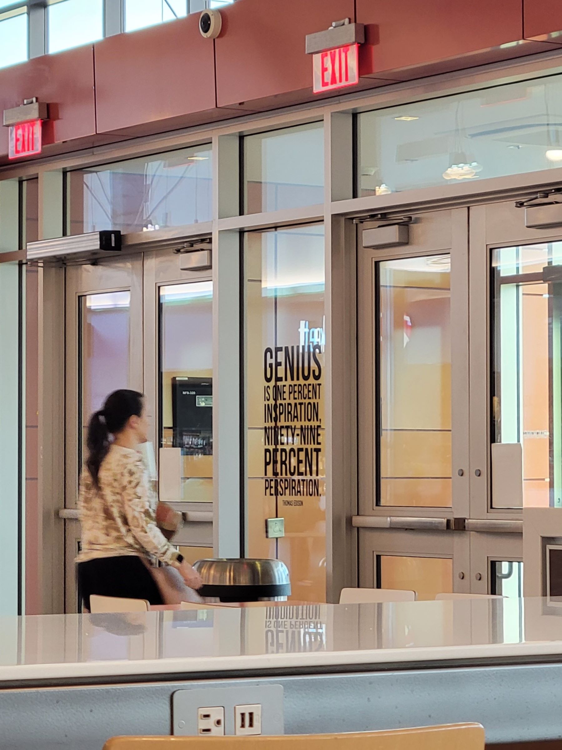 예전에 작성했던 미동부의 유료도로를 설명하는 포스팅에서 뉴저지(New Jersey) 주의 고속도로는 한국처럼 진출입 구간별로 이용요금을 징수해서 한국 스타일의 휴게소(service area)도 잘 만들어져 있지만, 차이점은 휴게소의 이름이 지역명이 아니라 유명한 인물들의 이름을 사용한다고 알려드렸었다. 그 중에 맨하탄에서 남쪽으로 95번 고속도로를 한 시간 못미쳐 달리면 나오는 휴게소의 정문 유리에는, 작년 초에 위기주부가 직접 찍어 놓았던 아래의 사진처럼 유명한 글귀가 적혀있다.