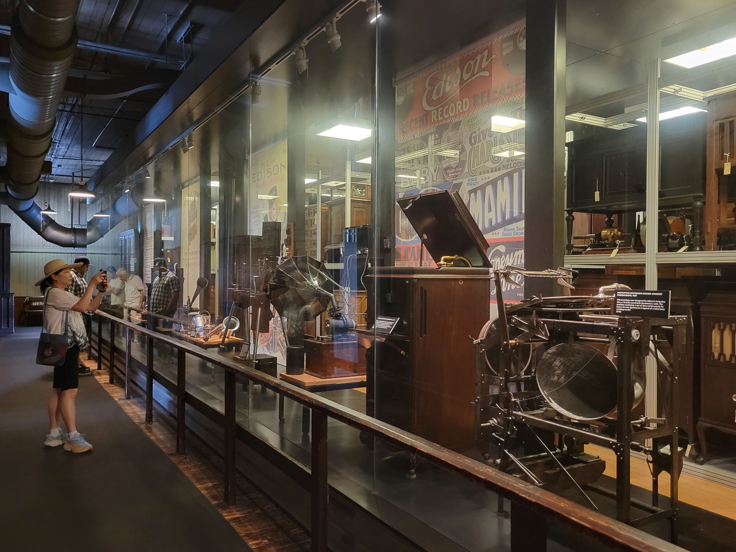 에디슨 회사의 로고가 박힌 초기 원통형 축음기들도 종류별로 많이 전시되어 있고, 작은 축음기가 내장된 '말하는 인형(talking doll)'의 실물도 있었다.