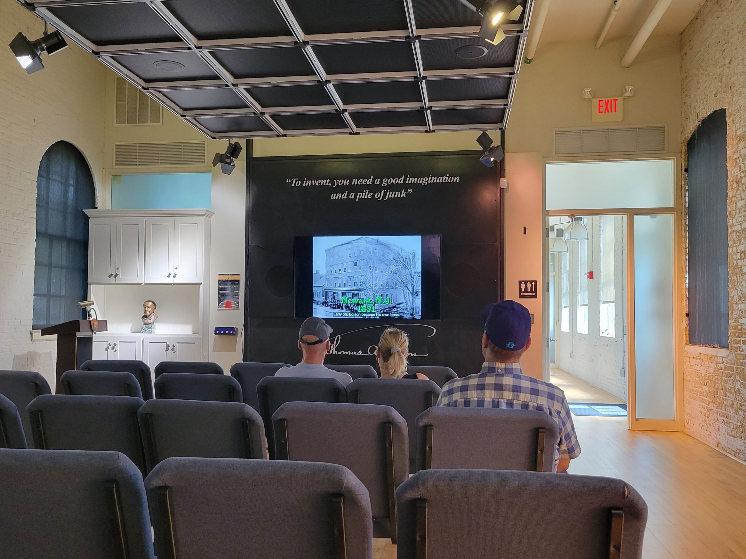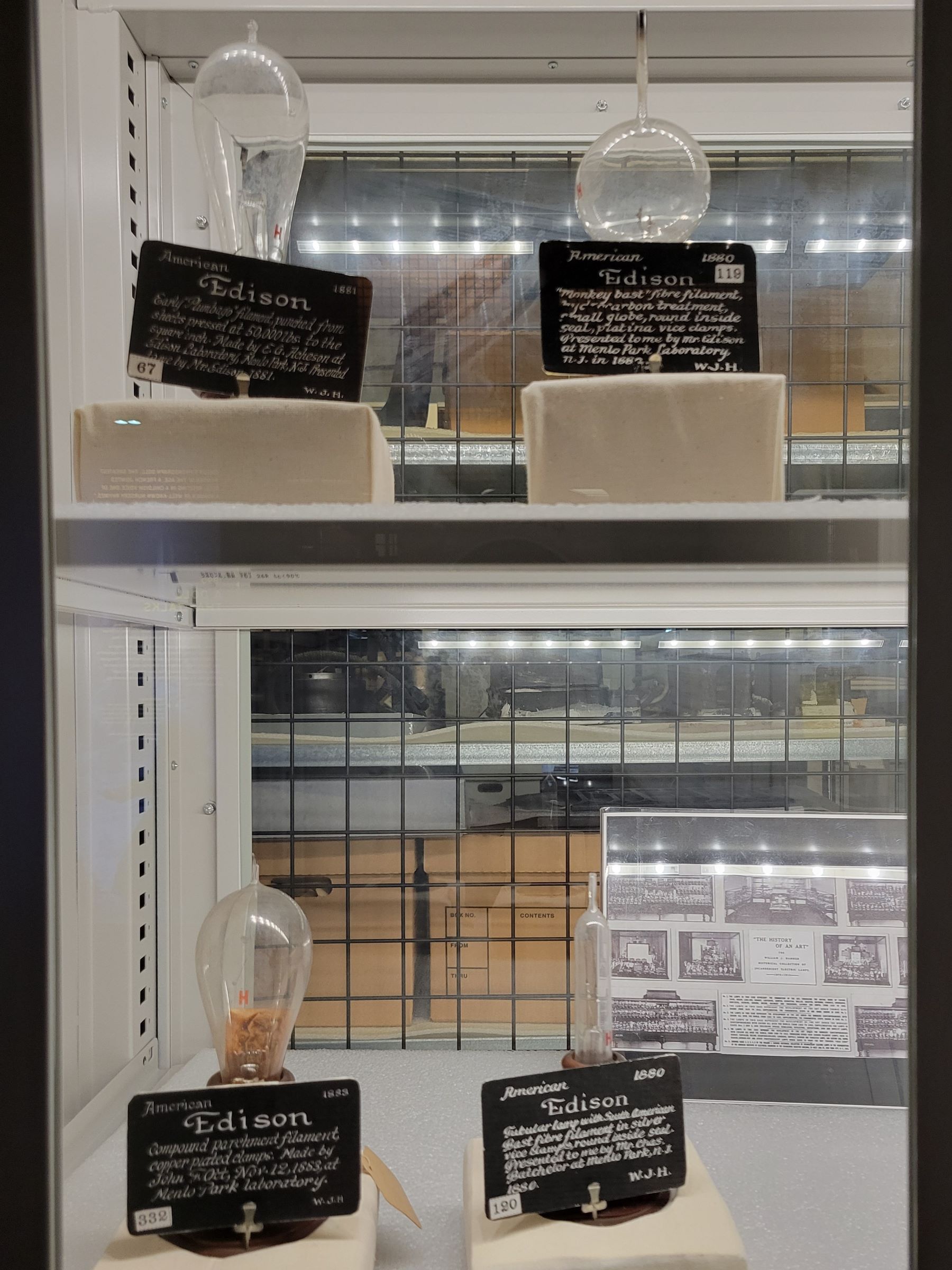 꼭대기까지 탁 트인 공간 전체를 에디슨의 많은 사진과 발명품들로 가득 채워놓은 이 홀에 들어서며 갑자기 정신이 번쩍 들었다! 특히 고풍스런 실내와 잘 어울리던 많은 조명에 눈길이 갔는데, 에디슨하면 전구가 제일 먼저 떠오르기에 그랬던 것 같다. 물론 저 조명들이 그의 탄소 필라멘트 전구가 아니라 최신 LED를 사용할 가능성이 높겠지만 말이다.^^