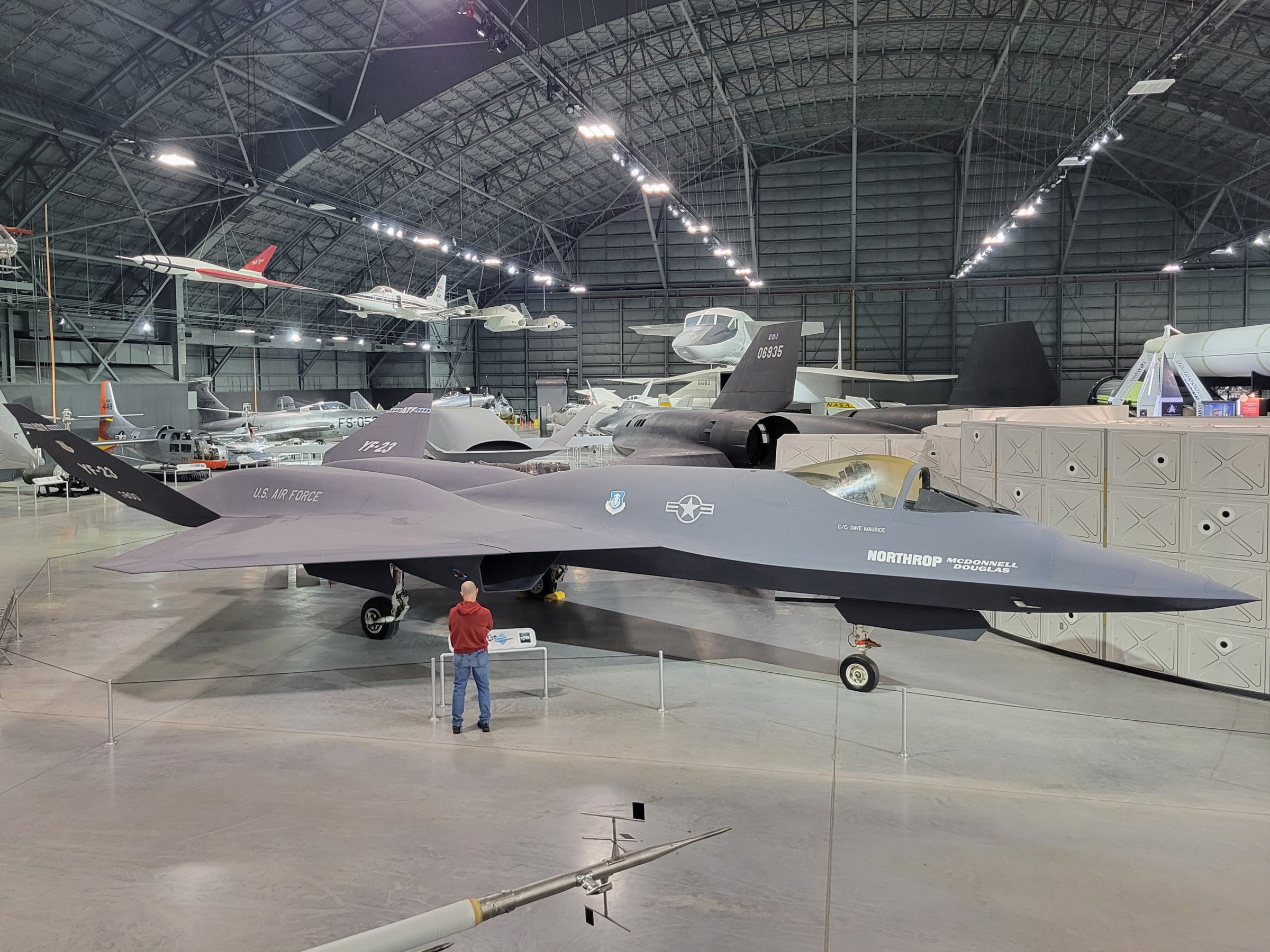 또 노스롭(Northrop)과 맥도넬더글라스(McDonnel Douglas)가 공동으로 개발했던 스텔스 전투기 시제품으로 단 2대만 제작된, 곡선미가 풀풀 풍기는 동체에 다이아몬드 날개가 특징인 YF-23도 전시되어 있는데, 결국 유명한 F-22의 시제기였던 록히드마틴(Lockheed Martin)의 YF-22와의 경쟁에서 탈락해서 양산되지는 못한 비운의 스텔스기이다.