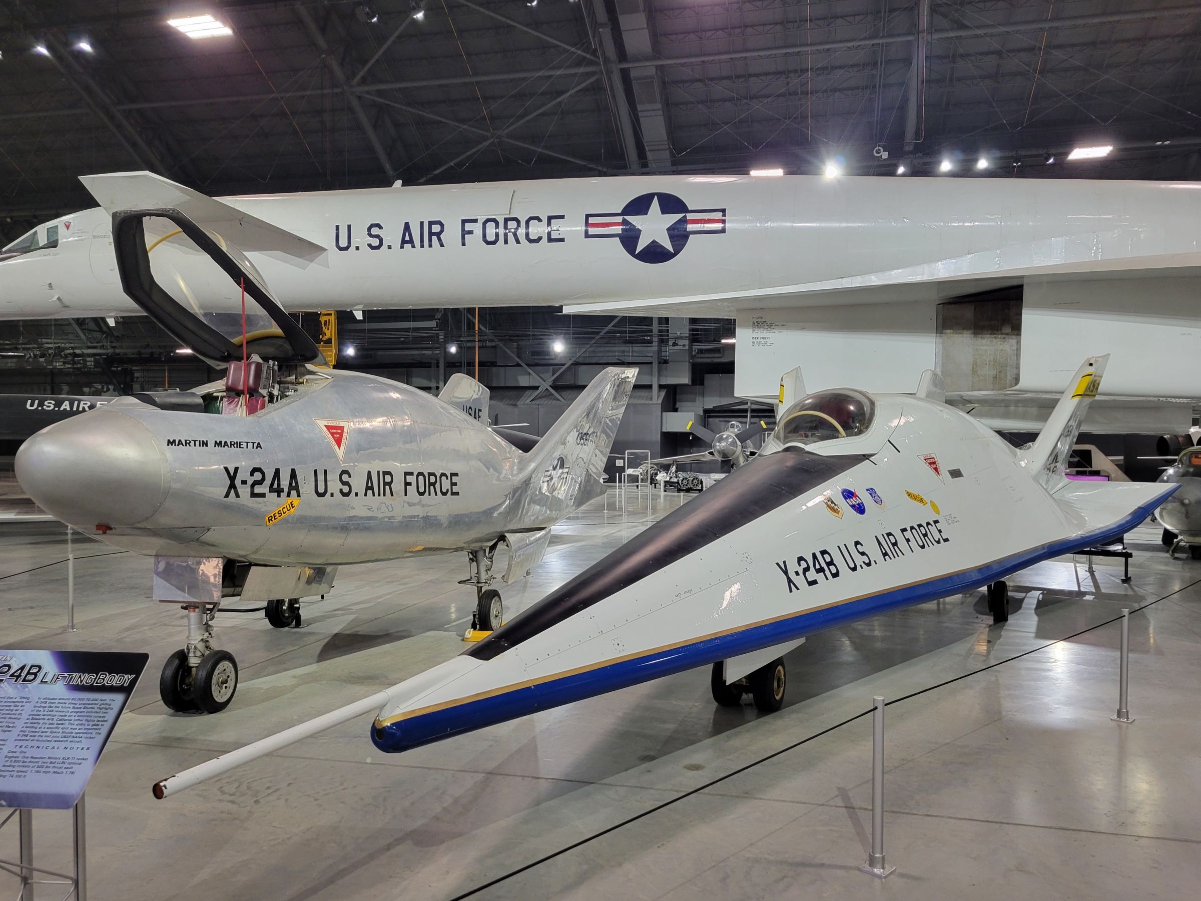 이외에도 많은 'X 실험기'들이 전시되어 있는데, 이 두 기체는 날개를 거의 없앤 디자인으로 활공 테스트를 해서 나중에 우주왕복선 설계의 기초를 제공한 X-24 시리즈이며,