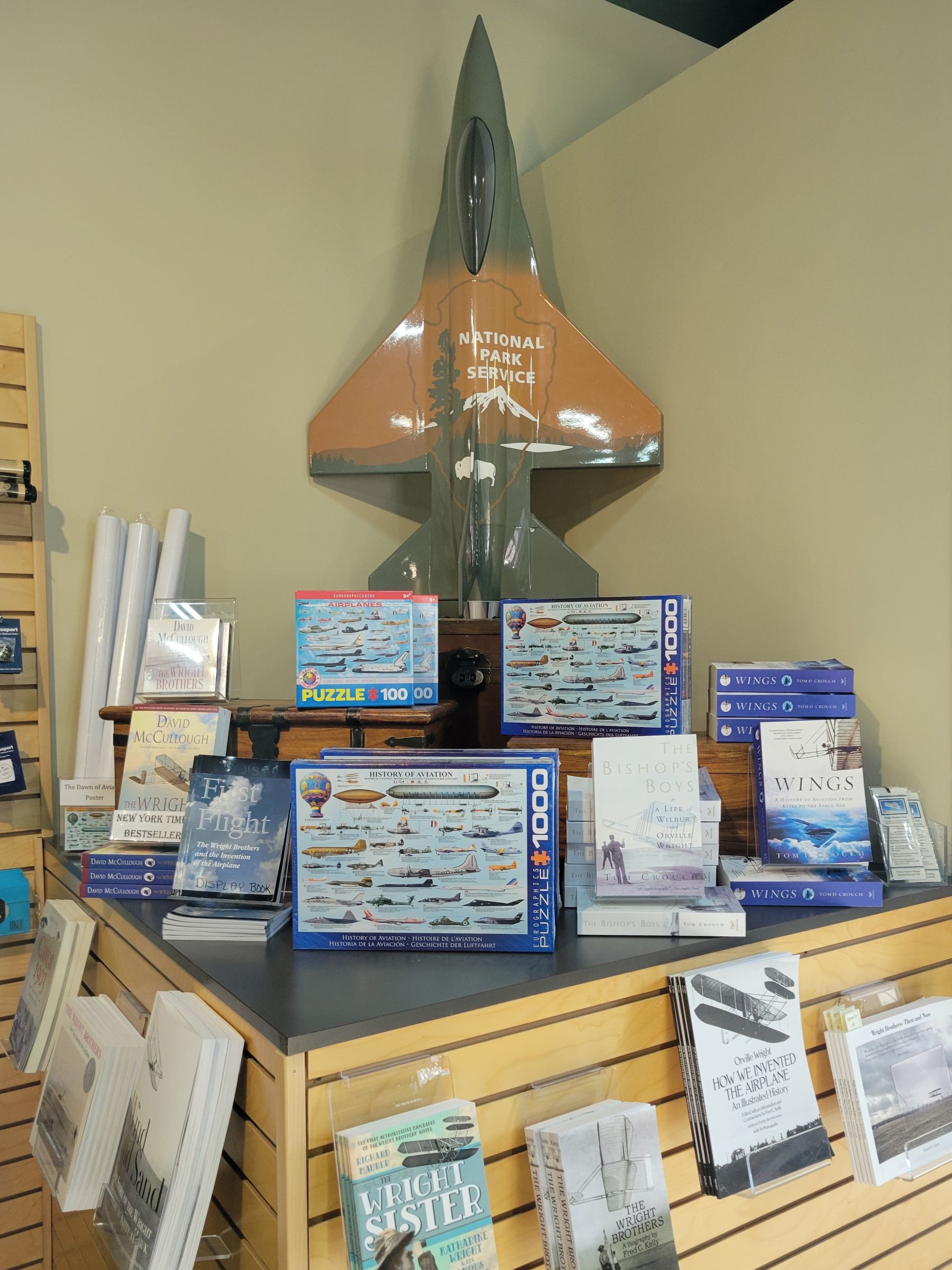 여러 책과 퍼즐을 판매하는 기념품 코너에 놓여진 국립공원청 도색의 커다란 전투기 모형이 참 특이했다.