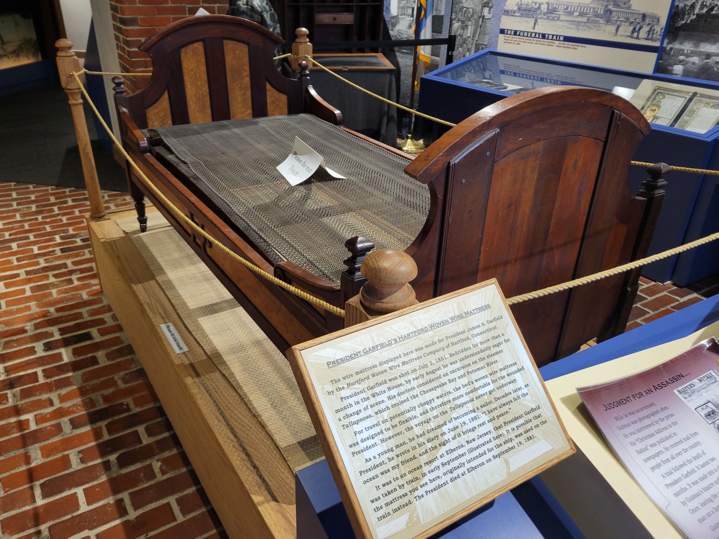 마지막에는 병상에 누운 상태로 백악관을 떠나 기차를 타고 뉴저지 바닷가 휴양지로 향했다가 거기서 사망하는데, 당시 덜컹거리는 기차의 충격을 완화하기 위해 철망으로 특수 제작되었던 매트리스 실물이란다. 이외에도 사망 후에 제작한 데드마스크와 손의 모형 등도 유리함 안에 전시되어 있었다.