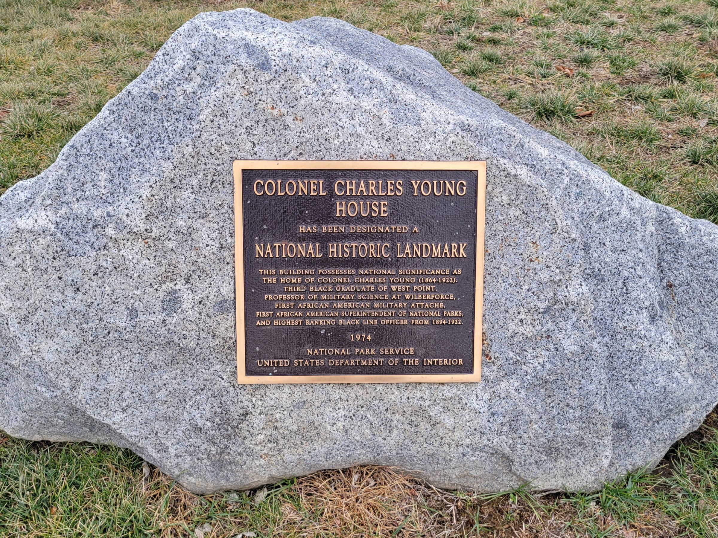앞마당에는 찰스영 대령(Colonel Charles Young)의 집이 1974년에 국가역사 랜드마크(National Historic Landmark)로 지정되었다는 동판이 있는데, 1864년에 태어나 육군사관학교를 졸업한 세번째 흑인으로, 여기 윌버포스(Wilberforce) 대학교의 교수이며 흑인 최초의 군사 무관이자 국립공원 감독관, 그리고 1922년에 사망할 때까지 미군에서 가장 높은 계급의 흑인이었다는 간단한 이력이 적혀있다.