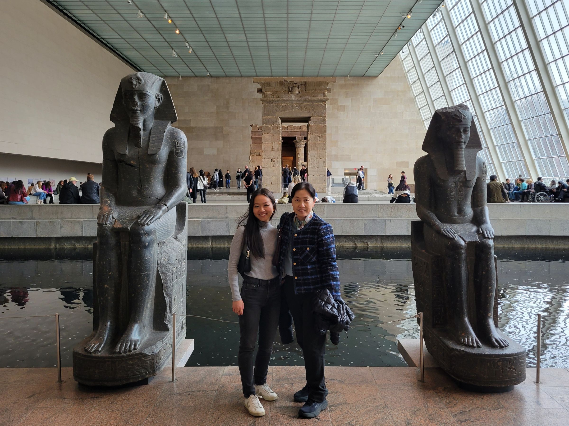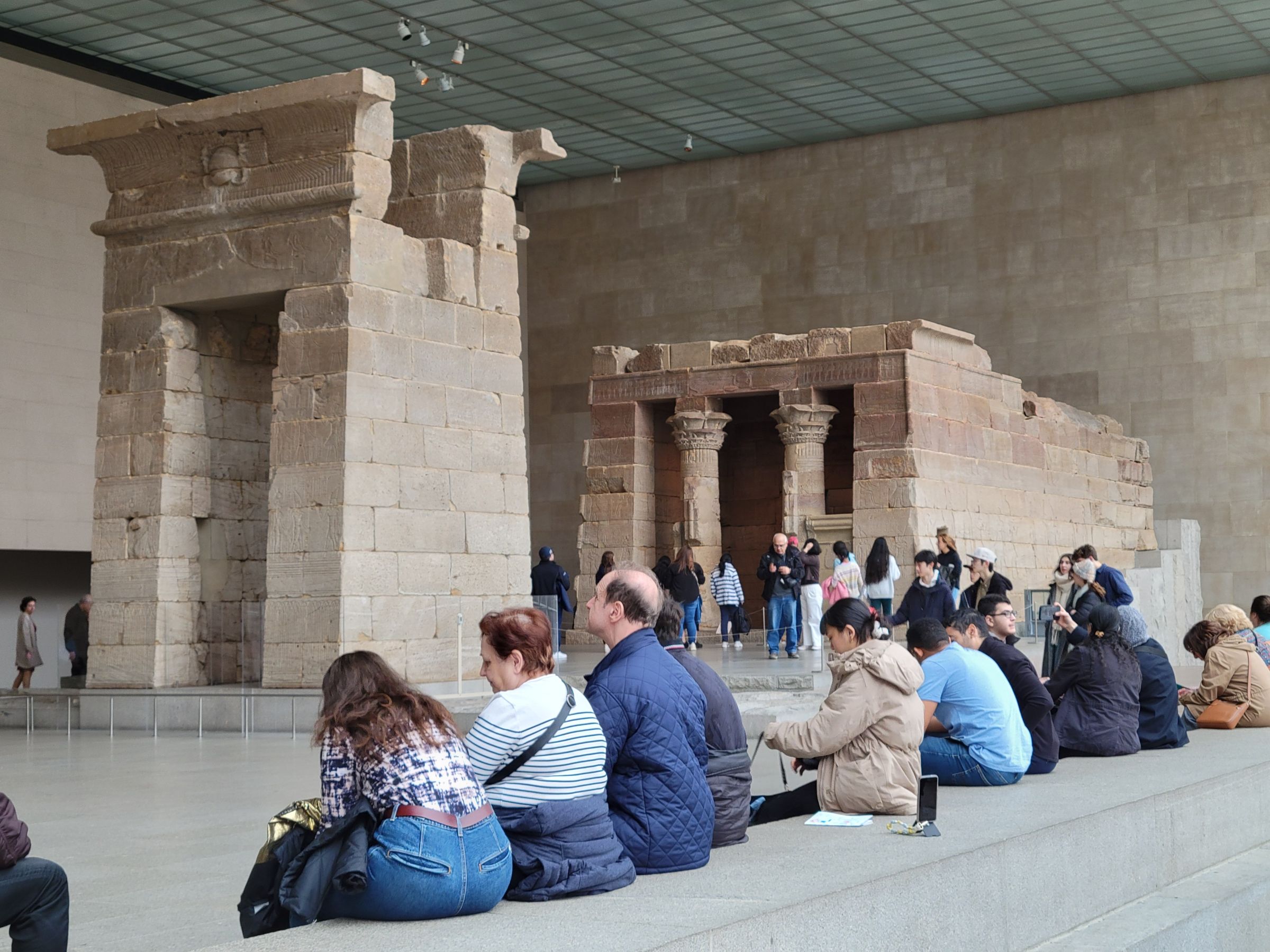 덴두르 신전(Temple of Dendur)의 널찍한 주변에 앉아서 휴식을 취하는 많은 사람들... "이집트 여행 안 가도 되겠다~"