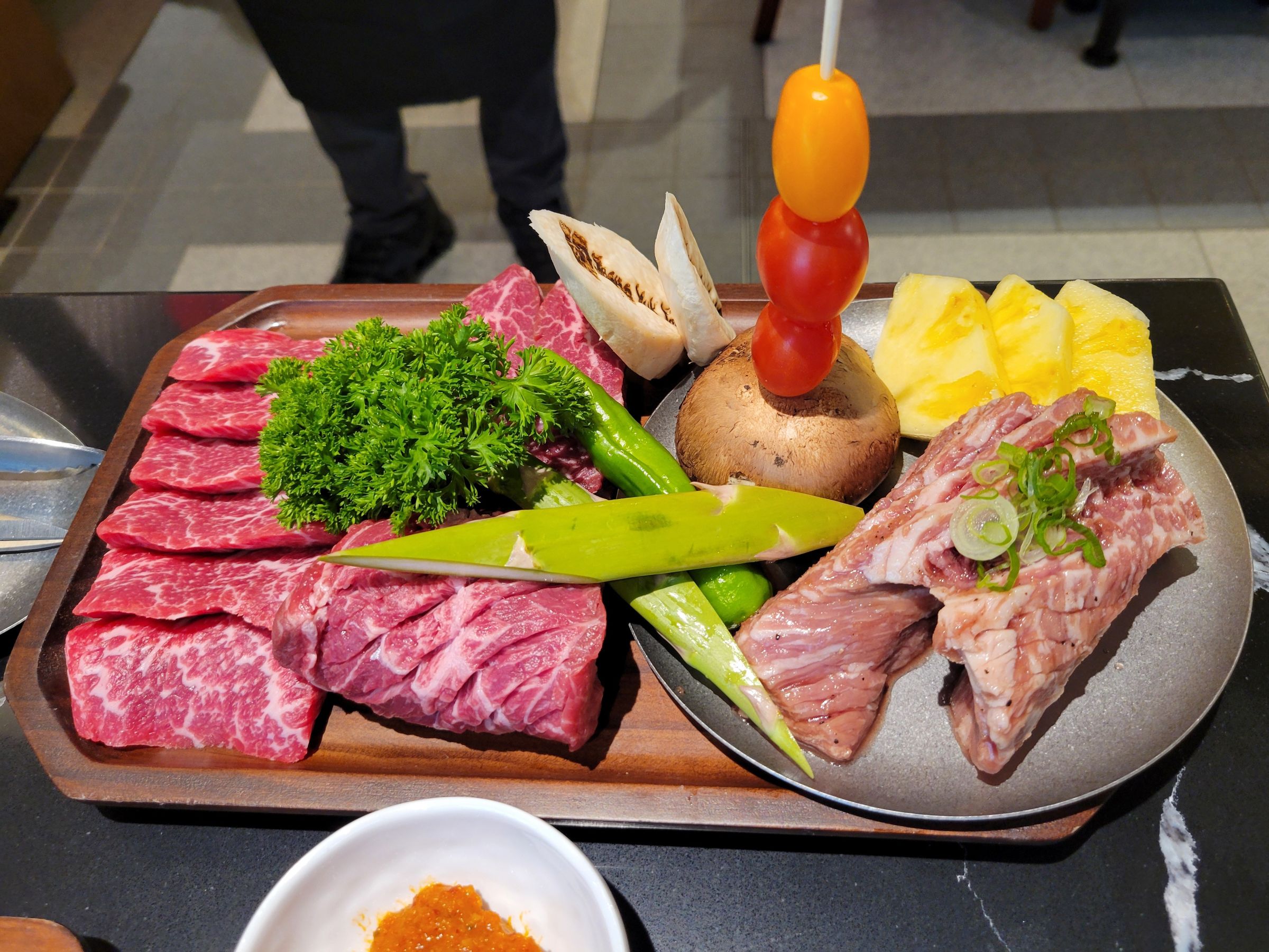 생일축하 점심은 맨하탄 코리아타운의 고깃집으로 갔는데, 셋팅이 예쁘게 되어 나와서 굽기 전에 한 컷...