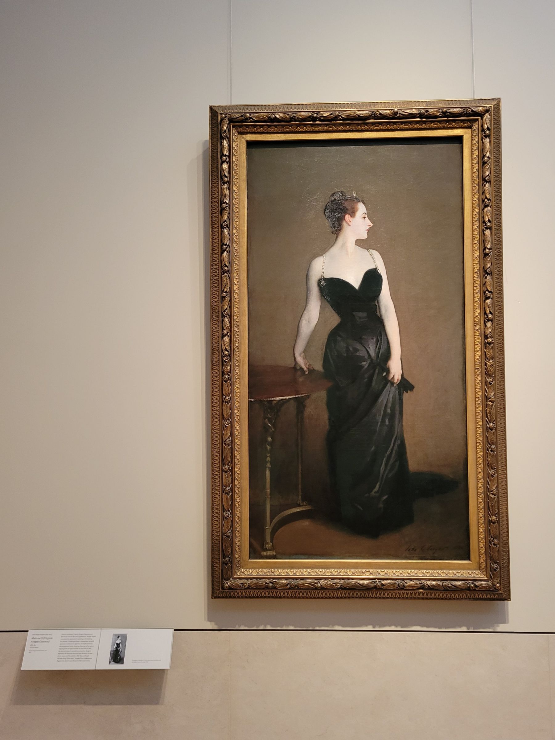 그 첫번째는 미국화가 존 싱어 사전트(John Singer Sargent)가 1884년에 파리에서 그린 <마담X의 초상> Portrait of Madame X 그림이다. 안내판의 작은 흑백사진이나 설명이 보이지는 않겠지만, 워낙 유명한 스캔들을 일으킨 그림이라서 더 이상의 자세한 설명은 생략한다~