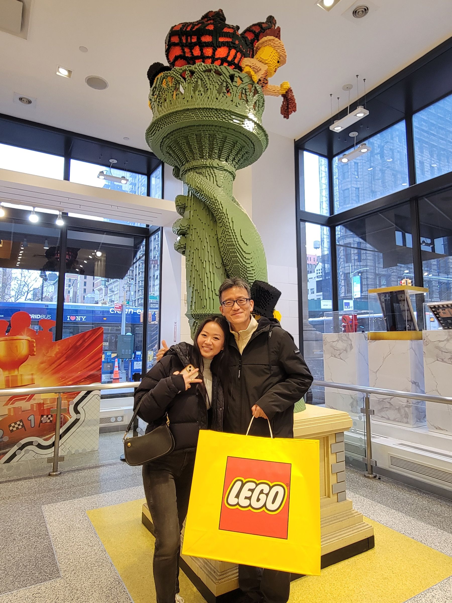 하하~ 딸이 사준 생일선물을 들고 즐거워 하는 아빠의 모습이다. 위기주부가 산타 할아버지한테서 2018년 크리스마스 선물로 받았던 레고가 '10년짜리' 크기였는데, 이번 것도 상당한 부피이므로 효력이 몇 년은 갈 듯하다. 커다란 레고 쇼핑백 때문에 많은 사람들의 시선을 감수하며 지하철을 타고 딸의 아파트로 돌아와서는 한국 부모님께 화상통화를 함께 드리고, 우리 부부는 1시간 정도 거리에 예약해놓은 뉴욕시 근교의 숙소로 향했다.