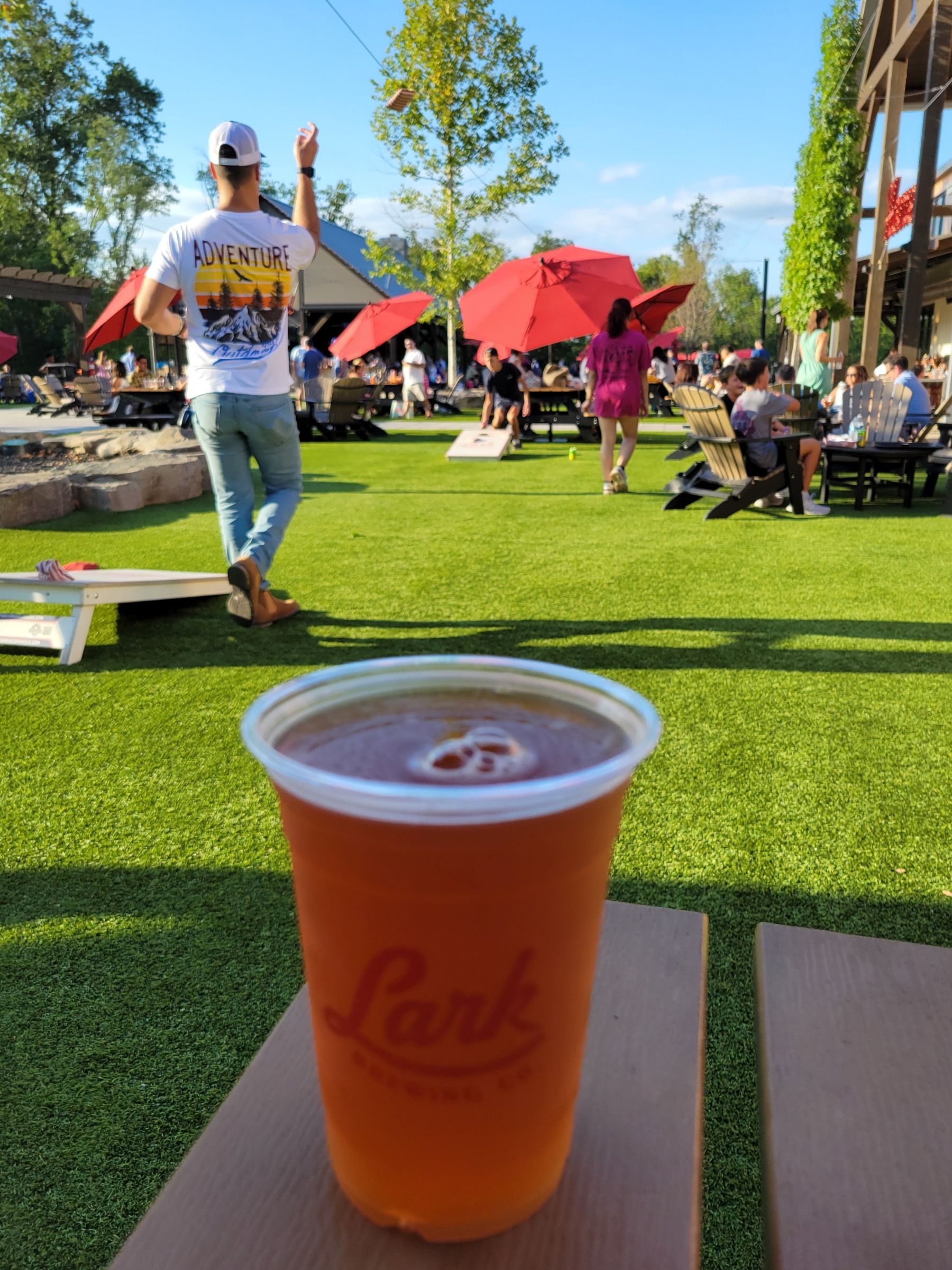 그래서 우리가 찾아간 곳은 라크 브루잉컴퍼니(Lark Brewing Co.)로 주차요원의 안내를 받아야 할 정도로 주차장이 넓었고, 사람들을 따라서 걸어오니 인조잔디 마당에서 공을 차며 노는 아이들이 제일 먼저 눈에 띄었다.