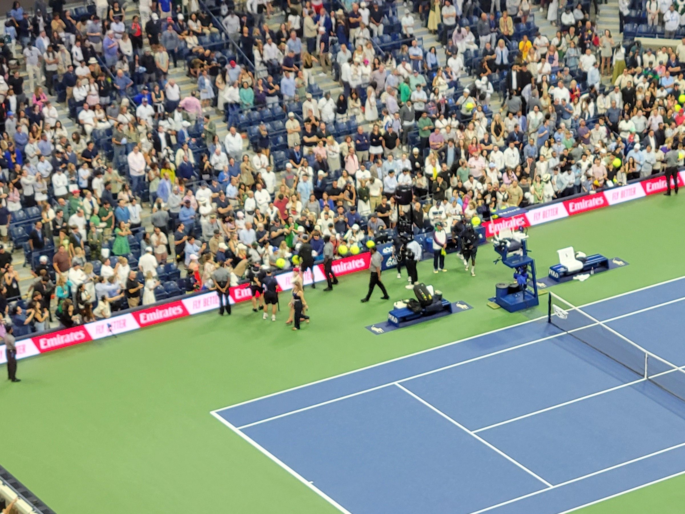 마지막으로 경기 내내 커다란 테니스공 기념품을 들고 코트 바로 옆에 줄지어 앉아 있어서 눈에 띄던 아이들에게 다가가 직접 사인을 해주고 퇴장을 했는데... 이 날 경기의 코트사이드 구역의 가격은 한 자리에 대략 2,000달러 정도 했었다!