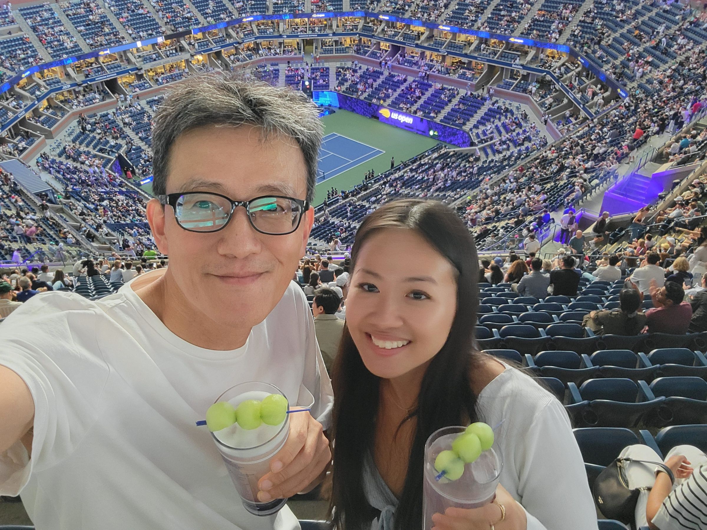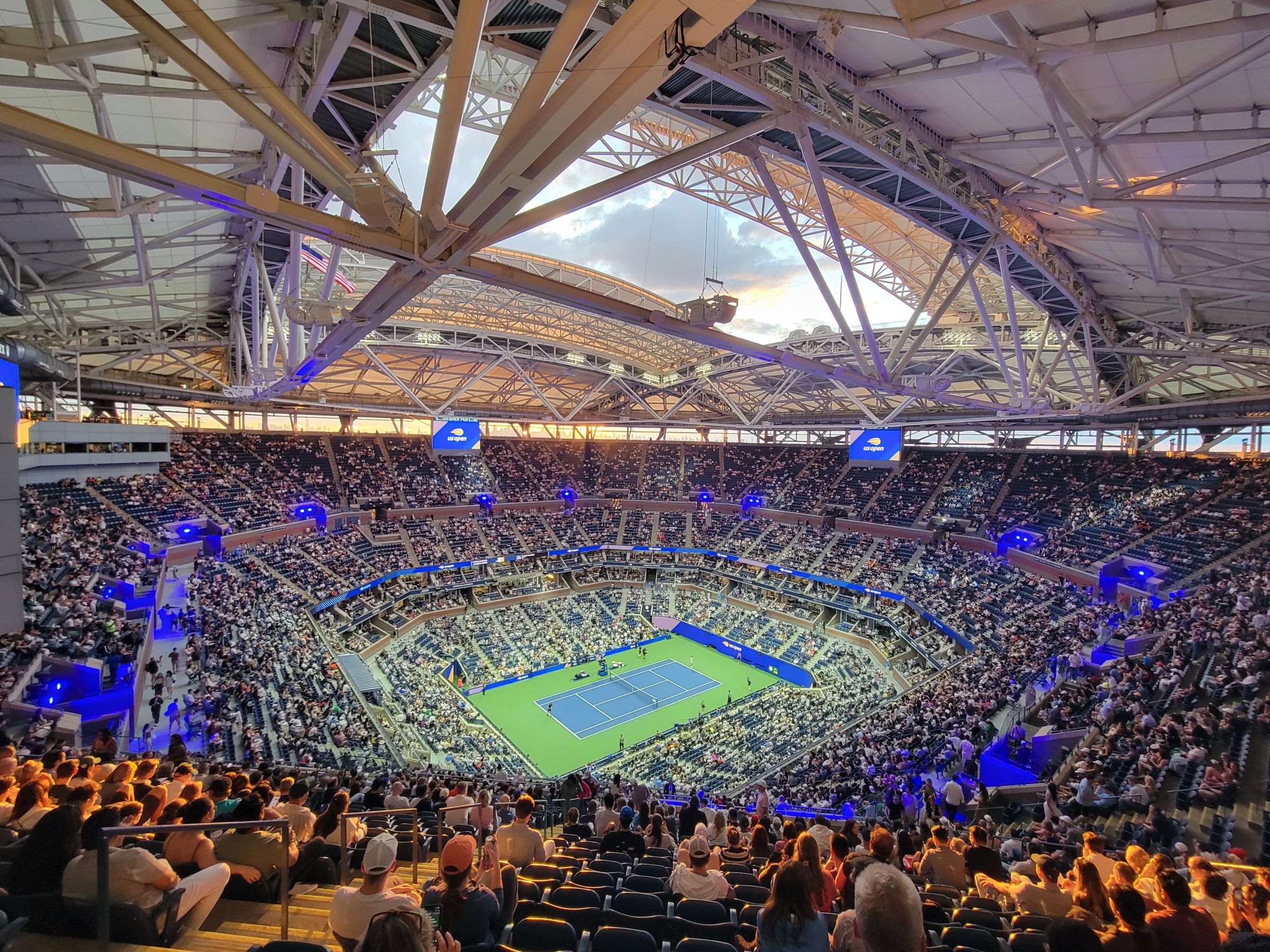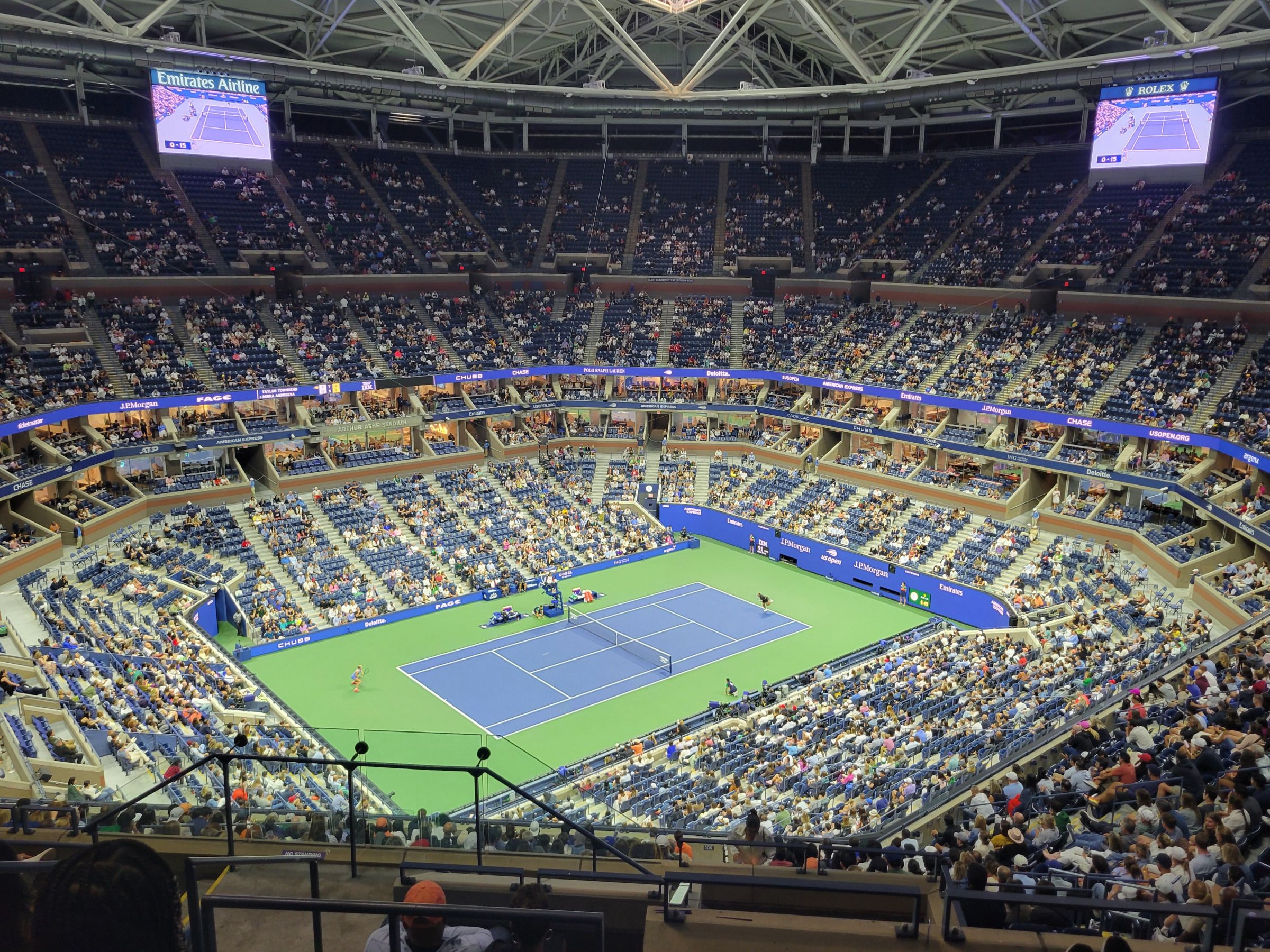 메인 테니스코트로 1997년에 개장한 아서 애시 스타디움(Arthur Ashe Stadium)은 프로 선수들에게도 최초로 개방된 1968년 US오픈의 단식에서 우승한 미국의 남자 흑인 선수의 이름을 땄다. 그런데 많은 사람들이 손에 뭔가를 들고 마시고 있어서 우리도 입구옆 다른 가게의 긴 줄에 잠시 섰다가, 직원이 경기장 안에서도 판다고 해서 일단 바로 입장을 했다.