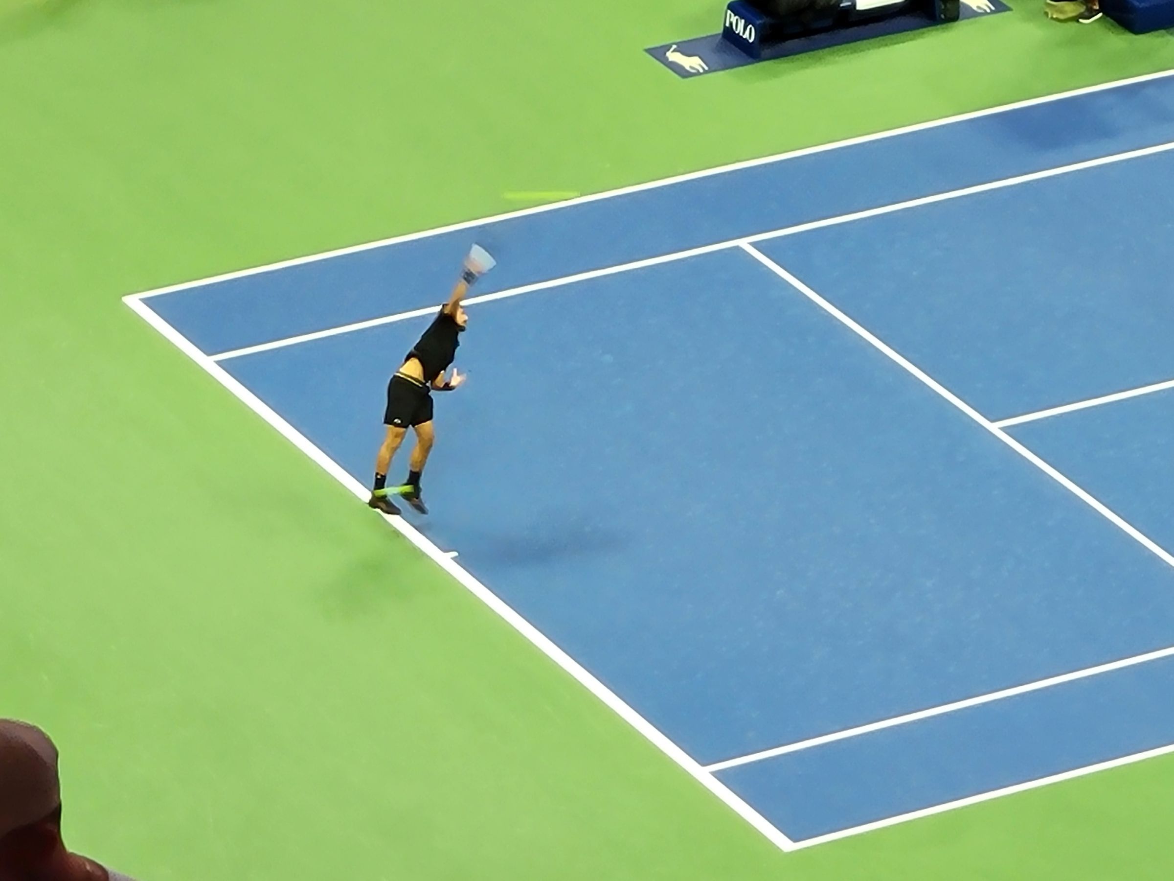 경기가 시작되고 처음에는 이렇게 핸드폰 10배 줌으로 조코비치의 사진을 좀 찍어보려다 그냥 관두고, 딸에게 테니스 룰을 설명해주며 경기 직관에 집중했다. 노리가 2세트만 타이브레이크 끝에 가져갔고 조코비치가 1세트와 3세트를 이겨서, 세트스코어 2:1에서 4세트가 진행되었고,