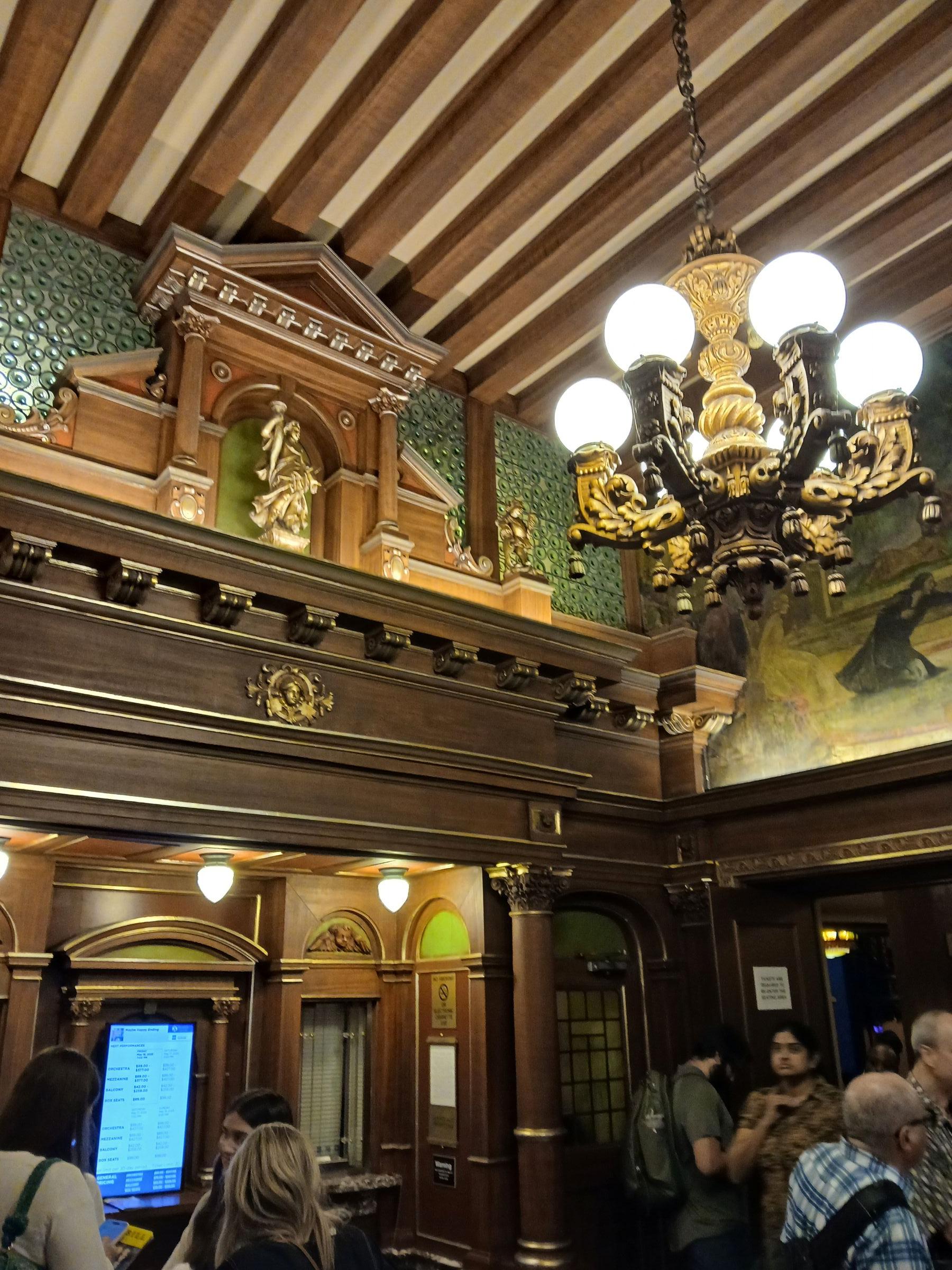 우리 자리에 앉아서 뒤돌아 극장을 올려다 봤는데, 박스석 위에 그려진 벽화하며 발코니 나무 난간의 조각 등이 정말로 고풍스러웠다. 전체 좌석수가 1천석 정도 되는 중형 극장이지만, 이 날 토요일 저녁 7시 공연은 거의 매진이었다.