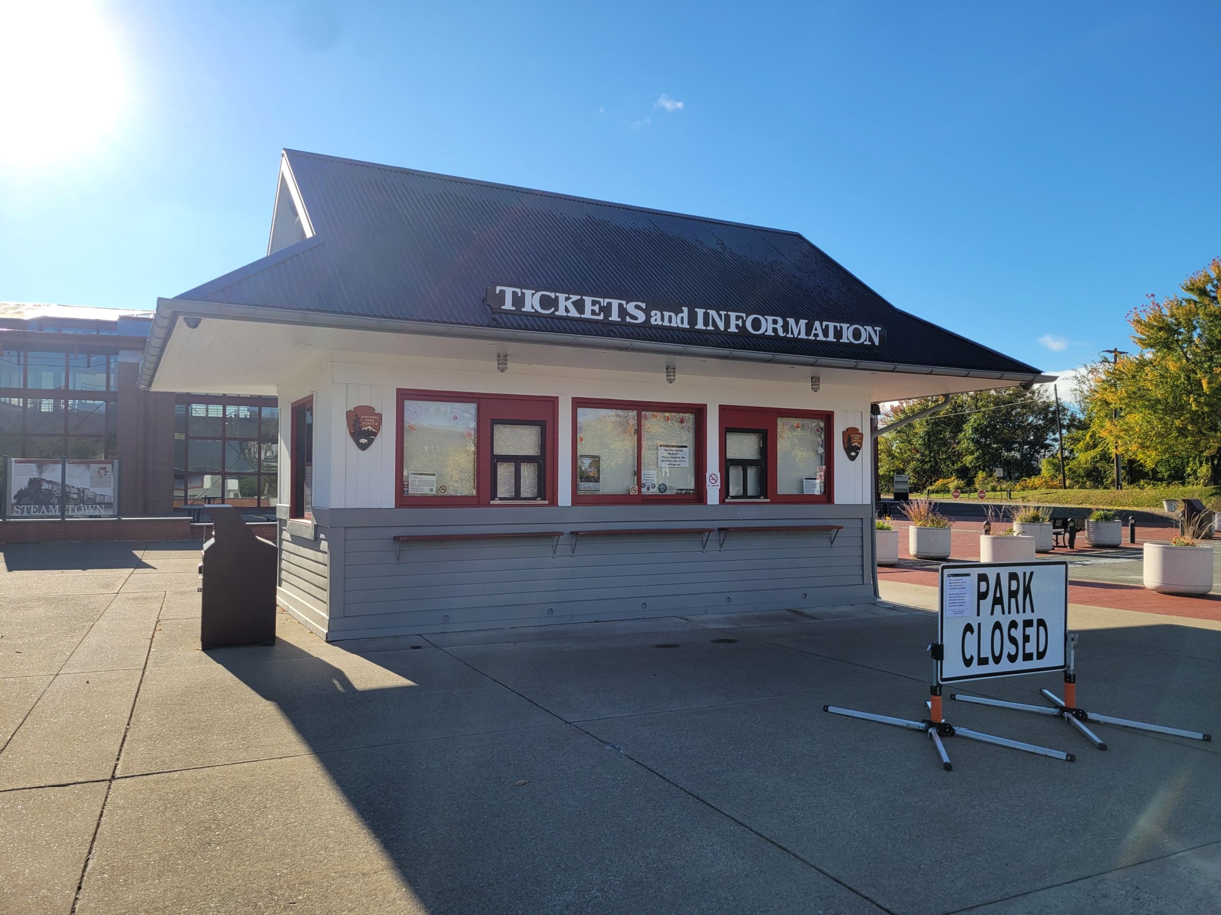 그래도 꿋꿋하게 건물쪽으로 걸어와보니 매표소 겸 안내소 건물이 나온다. (구글맵으로 위치를 보시려면 클릭) 공원이 운영되는 주말에는 인근의 마을로 향하는 실제 복원된 증기 기관차가 끄는 열차를 타고 '소풍(excursion)'을 갈 수도 있는데, 그 목적지들 중에는 여기서 남동쪽으로 11마일 떨어진 모스크바(Moscow)도 있단다.^^