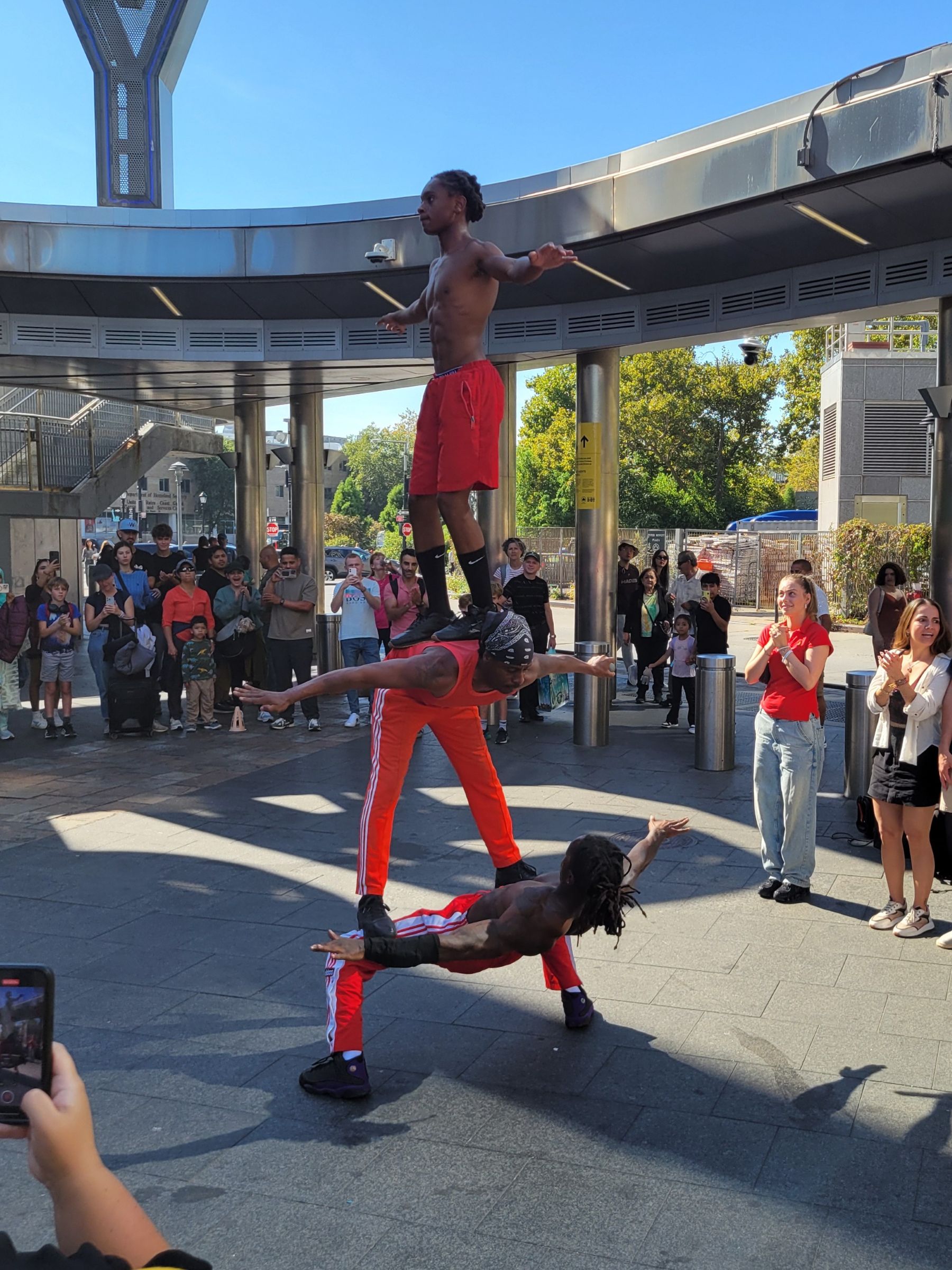 배에서 내리자마자 마주친 것은 화이트홀 터미널 앞 광장에서 거리공연을 하는 사람들...