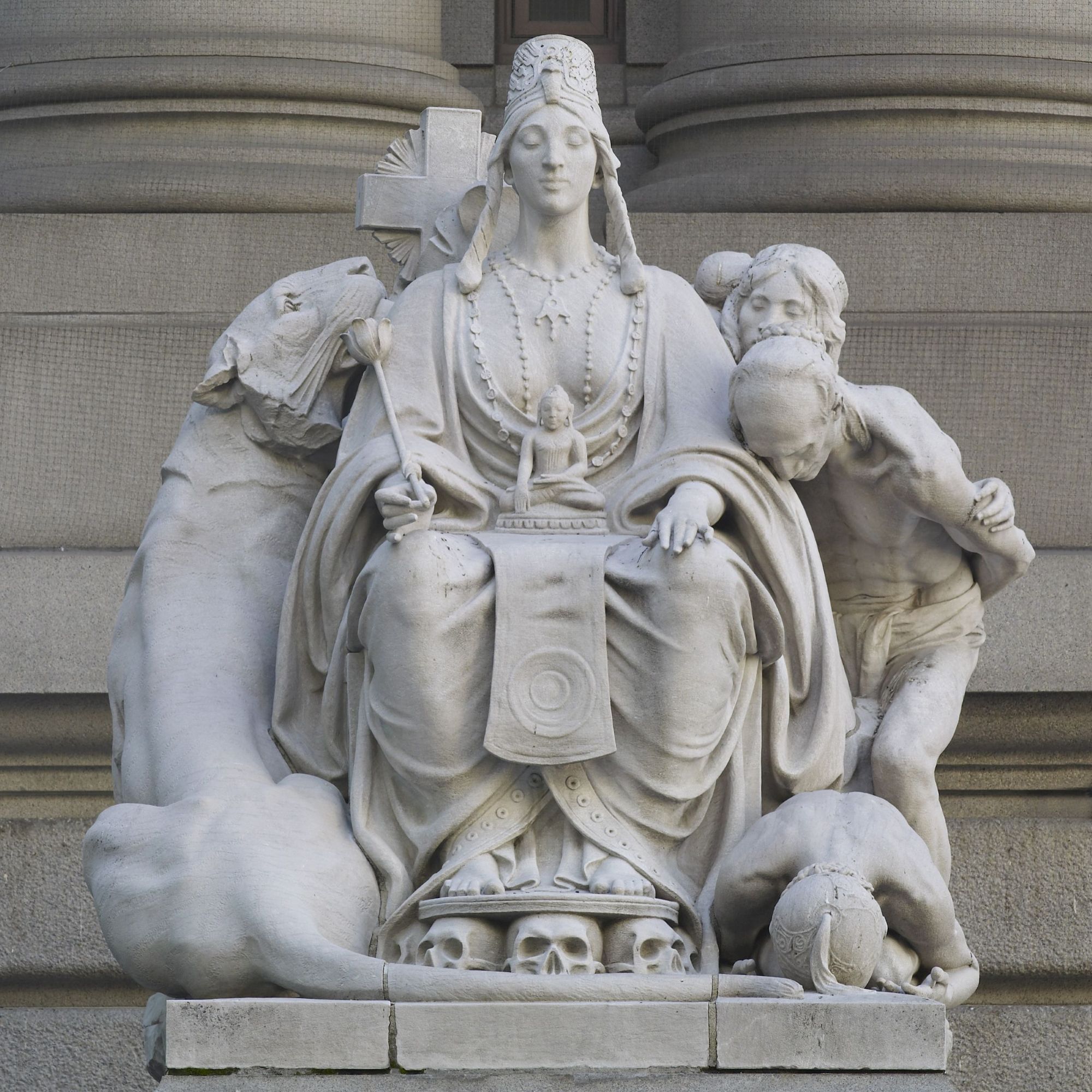 워싱턴 링컨기념관의 링컨 좌상과 보스턴 하버드대학교의 존하버드 동상 등 의 많은 조각을 제작한 다니엘 체스터 프렌치(Daniel Chester French)의 작품으로 각각 아시아, 아메리카, 유럽, 아프리카를 의인화한 여성상들로 세부적인 묘사들이 재미있어서 위키에서 확대 사진을 가져와 보여드린다. 하지만 관광객들은 이 조각들과 건물에는 거의 관심이 없고, 볼링그린의 나무들을 사이에 두고 바로 건너편에 있는...