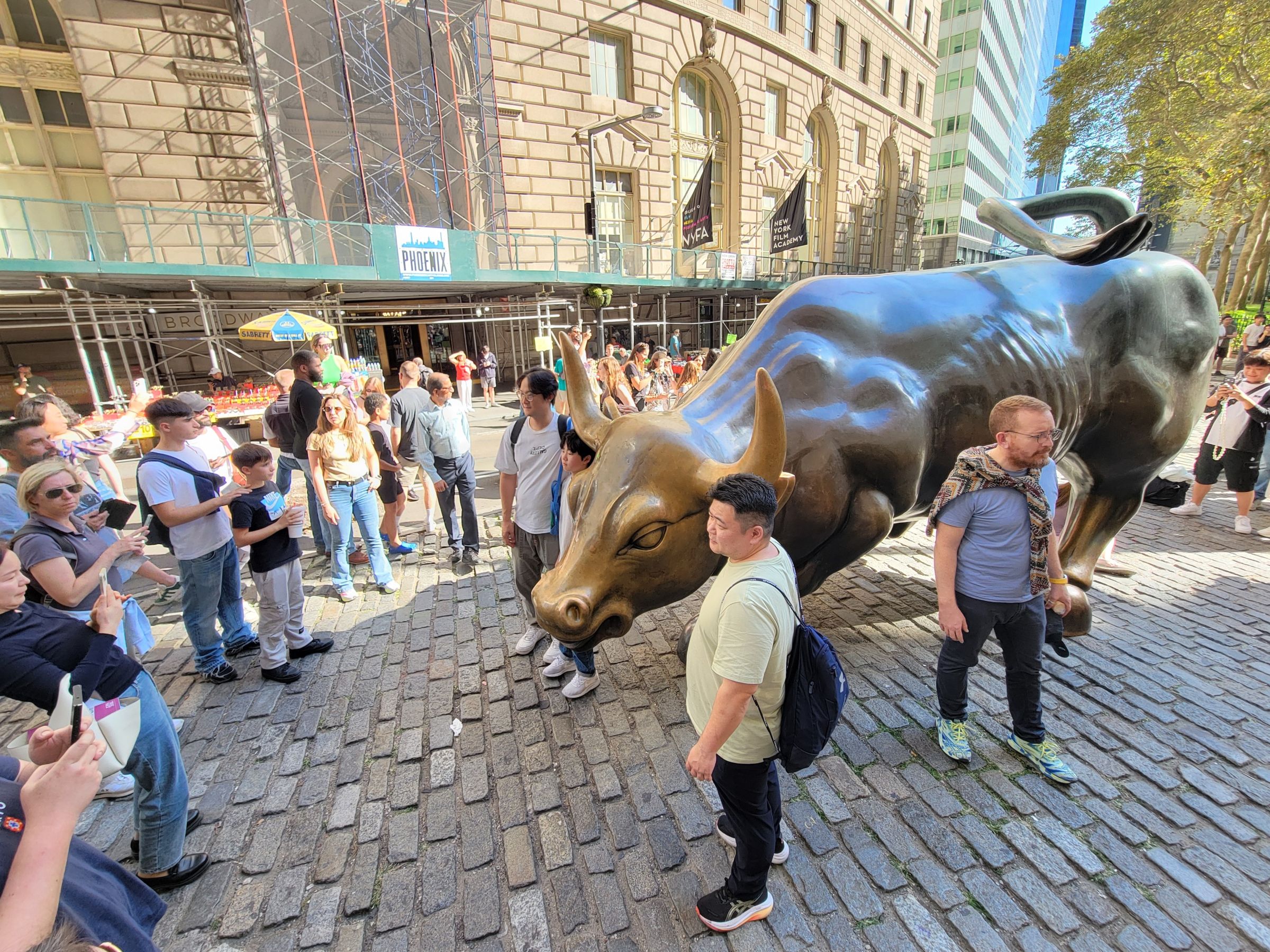 이 '황소' 주위에만 가득 몰려들었다.^^ 특히 뒤쪽에서 저렇게 포즈를 취하고 사진을 찍기 위해서 아주 긴 줄이 만들어져 있었는데, 특히 중국인들 사이에 저 부위를 만지면 돈을 많이 벌게 된다는 소문이 있단다. "그래요, 반질반질하게 만지고 부자되세요~"