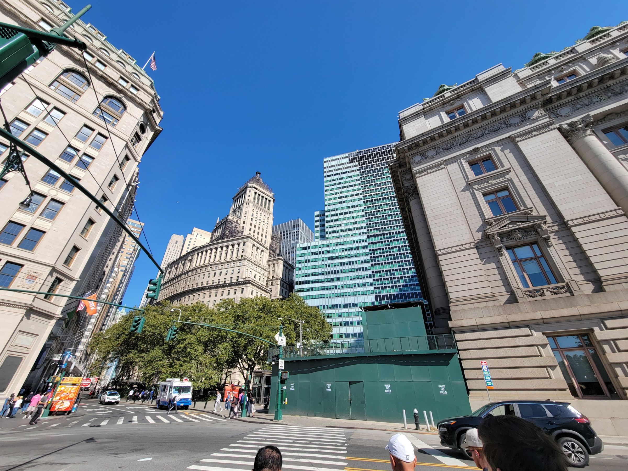 좌청룡 우백호가 아니라, 좌-저지시티 우-브룩클린의 맨하탄 다운타운을 향해 천천히 다가가고 있다. 하지만 실제 브룩클린의 고층건물들은 사진 오른편에 잘려서 보이지 않고, 브룩클린 브리지 너머로 홀로 우뚝 솟아있는 고층건물은 맨하탄의 투브리지(Two Bridges) 지역에 2019년 완공된 80층짜리 고급 아파트 One Manhattan Square 빌딩이다. 그런데 위키에 따르면 아직도 입주율이 70% 정도밖에는 안 된다고...