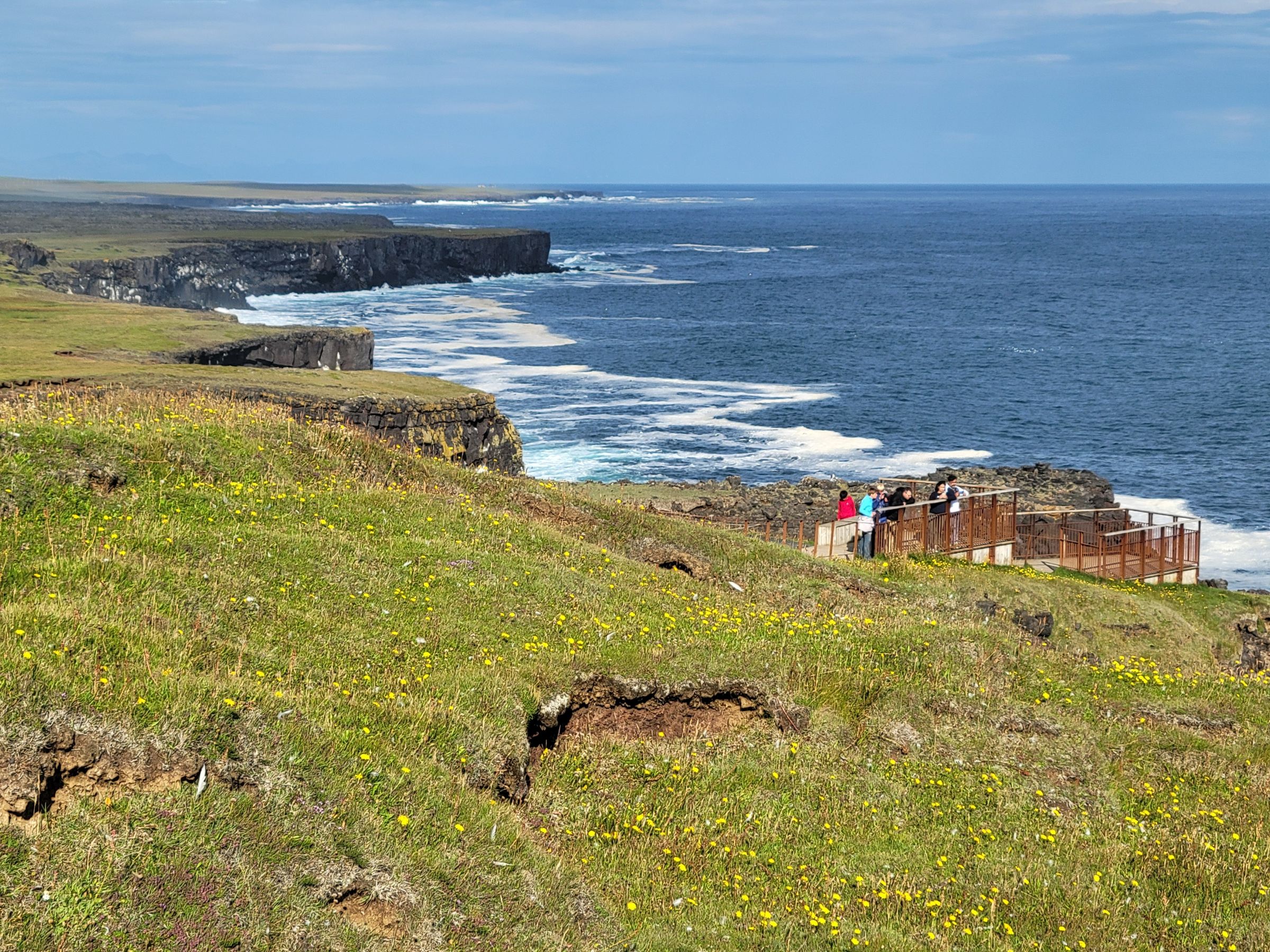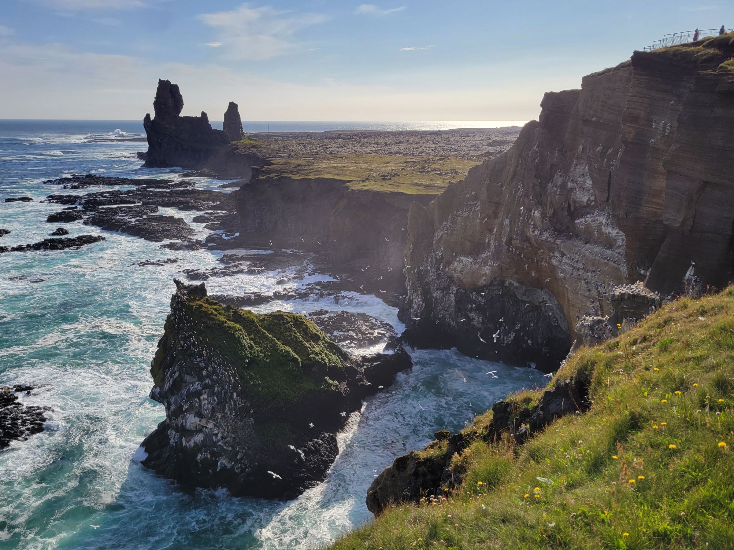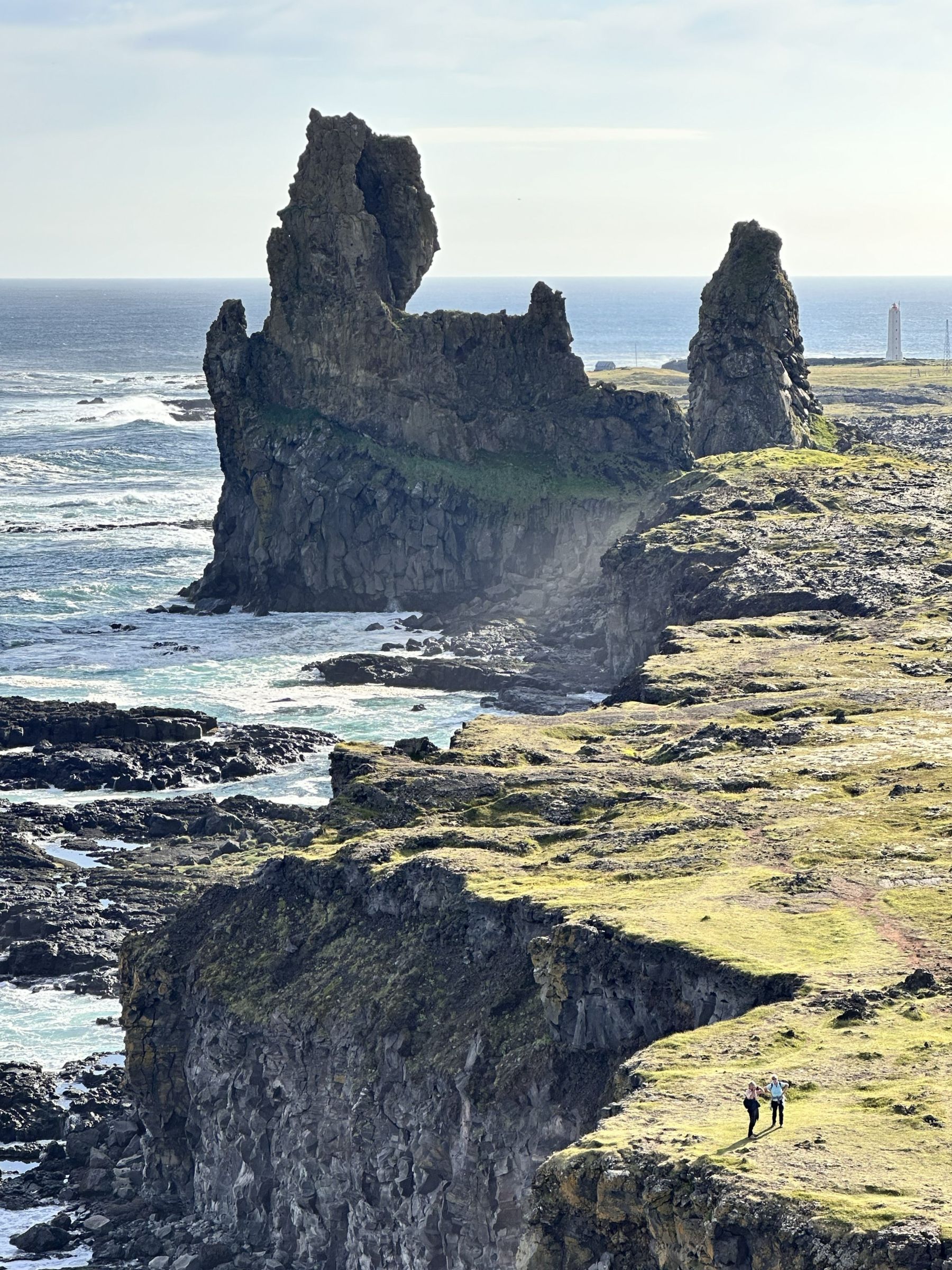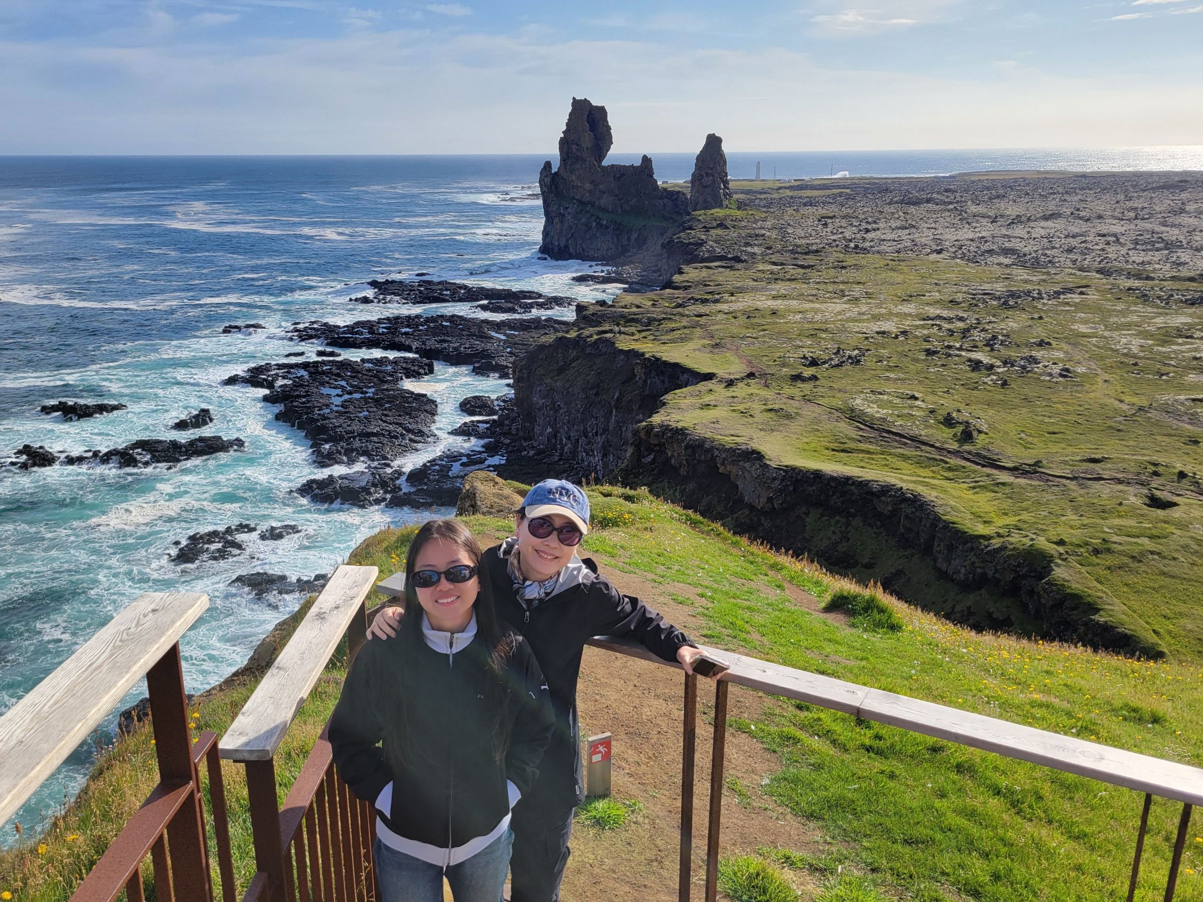 그 볼거리는 바로 바닷가 절벽 위애 성채처럼 우뚝 솟아있는 론드랑가르(Lóndrangar) 바위로, 방금 관광버스가 떠나서 그런지 전망대를 우리 가족이 독차지할 수 있었다. (구글맵으로 위치를 보시려면 클릭)